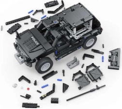 A CADA Make Your Bricks Move sorozat építőkészlete remek választás mindenkinek, aki szereti a műszaki kihívásokat és a dinamikus játékot. A részletes felépítésnek, a funkcionális elemeknek és a távirányításnak köszönhetően valósághű vezetési élményt és mutatós kiállítást kínál. A fekete kivitel szürke akcentusokkal és feltűnő POLICE feliratokkal még robusztusabb SUV-megjelenést ad.