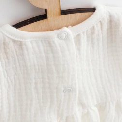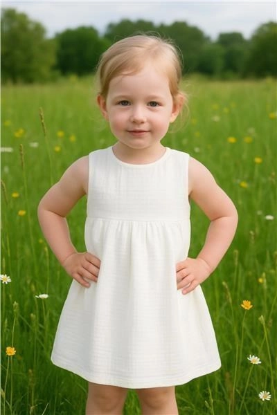 A bájos New Baby Elizabeth kislányruha finom muszlinból készült, amely kiemelkedik légáteresztésével, puhaságával és könnyedségével. Az ujjatlan A-vonalú szabást egy szépen ráncolt szoknya egészíti ki, hátul patentos záródással a gyors öltöztetéshez.
