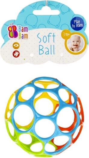A Bam Bam színes gumilabda remek játék 3 hónapos kortól. Támogatja a finom- és nagymozgások fejlődését, ideális dóbálásra, gurításra és vízben való játékra. Kellemes anyagának és 10 cm-es átmérőjének köszönhetően a kis kezek könnyen megfogják.