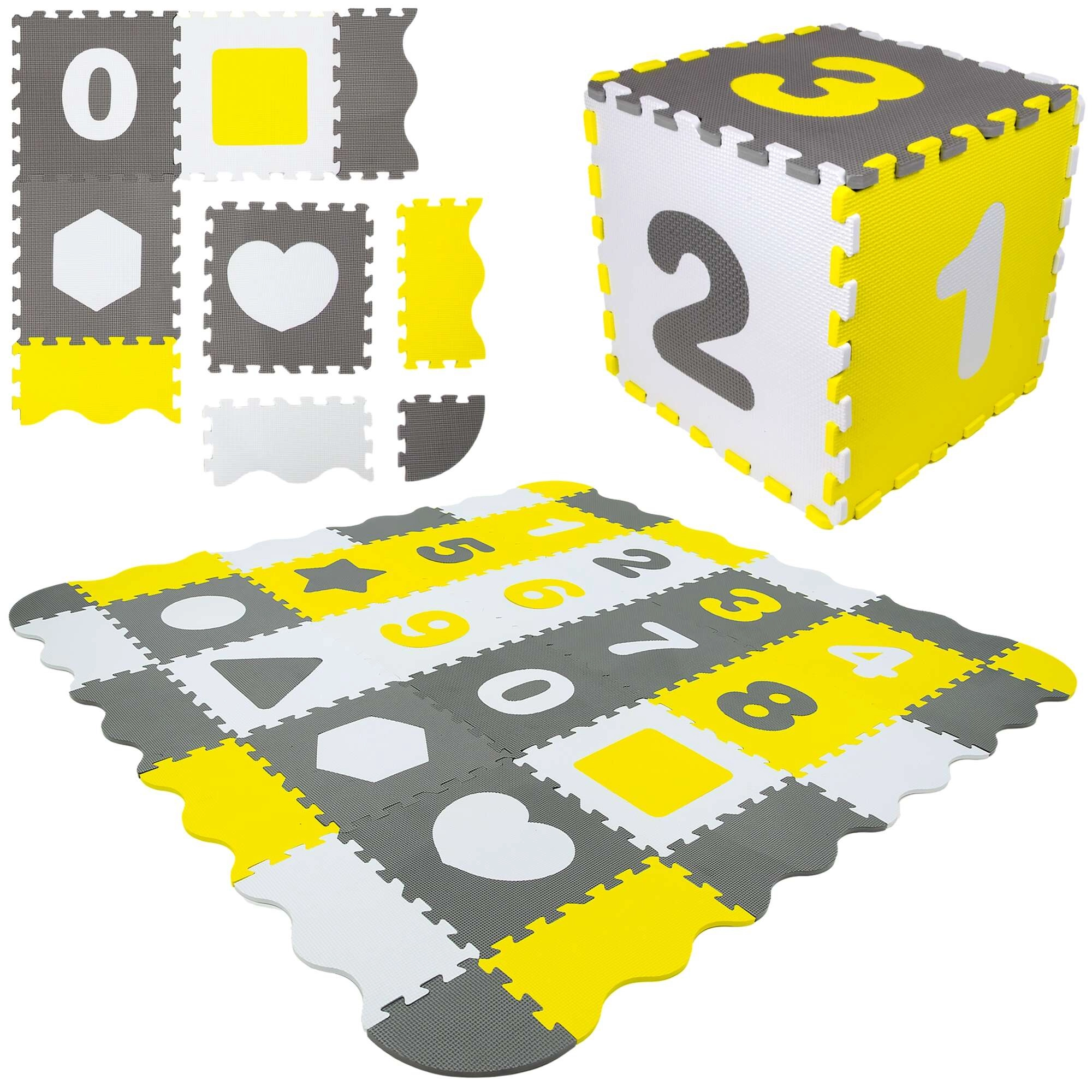 Minden elem kivehető betéteket tartalmaz számokkal és formákkal, amelyekkel számtan, alakfelismerés és térbeli képzelőerő fejleszthető, valamint 3D tárgyak építhetők. A peremlécek és sarkok segítségével 120 × 120 cm méretű, 15 cm magas oldalfalú karám állítható össze, vagy a felület teljes méretre, 150 × 150 cm-re nyitható.