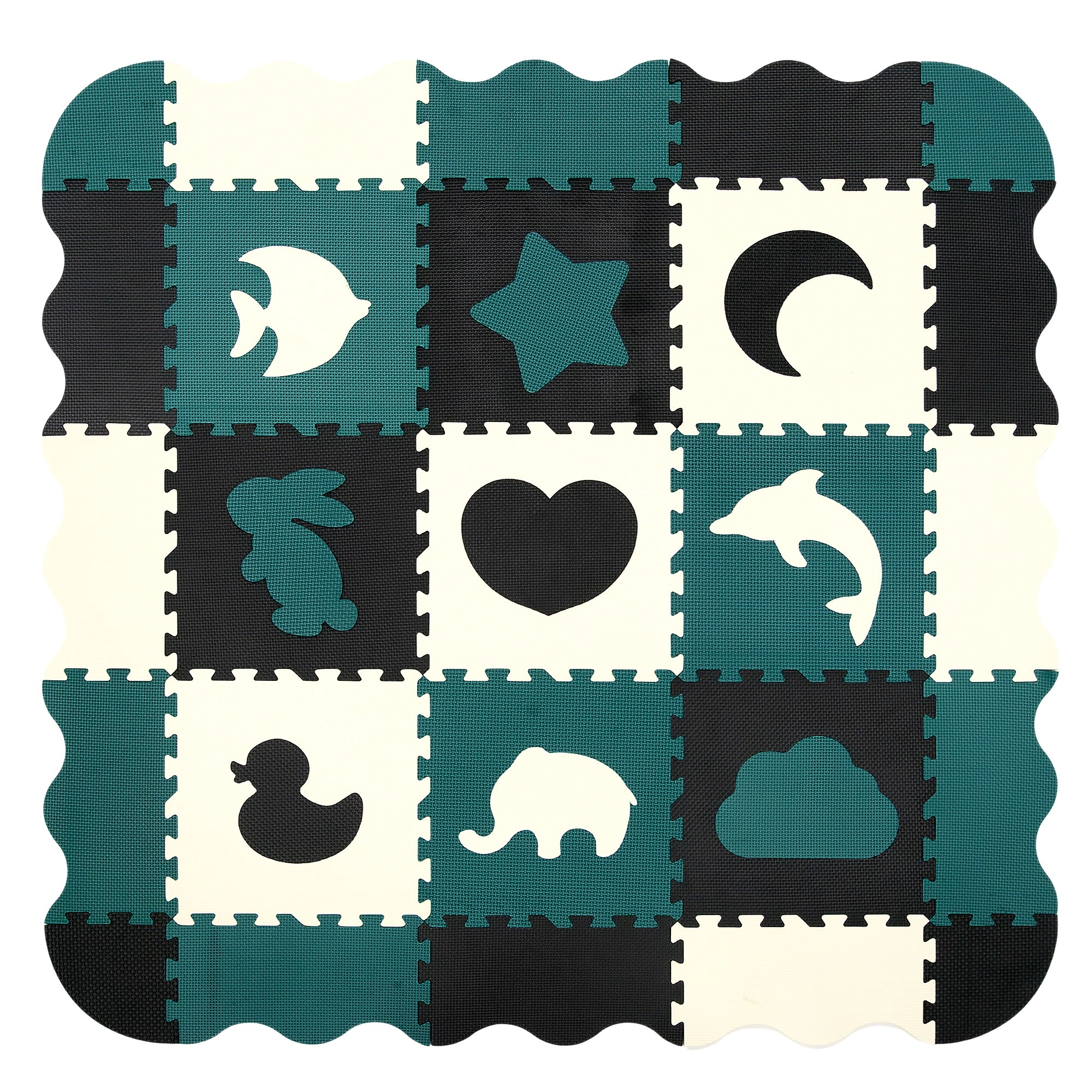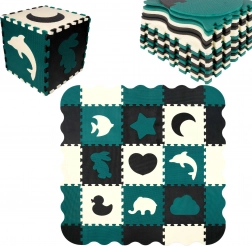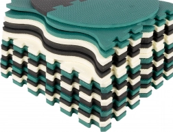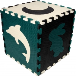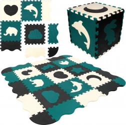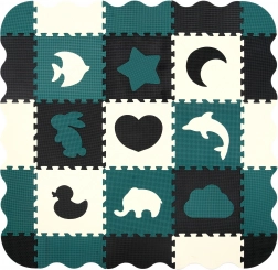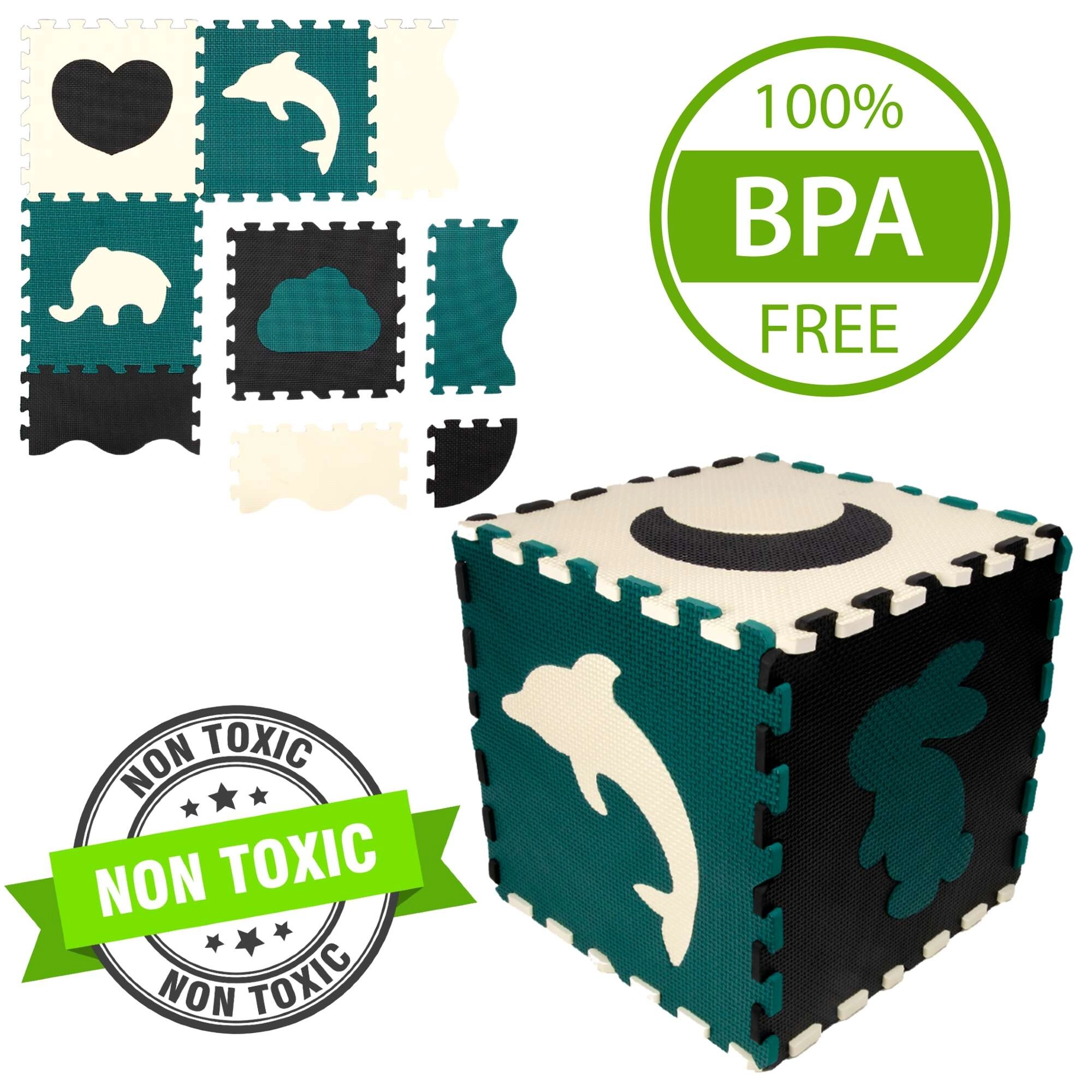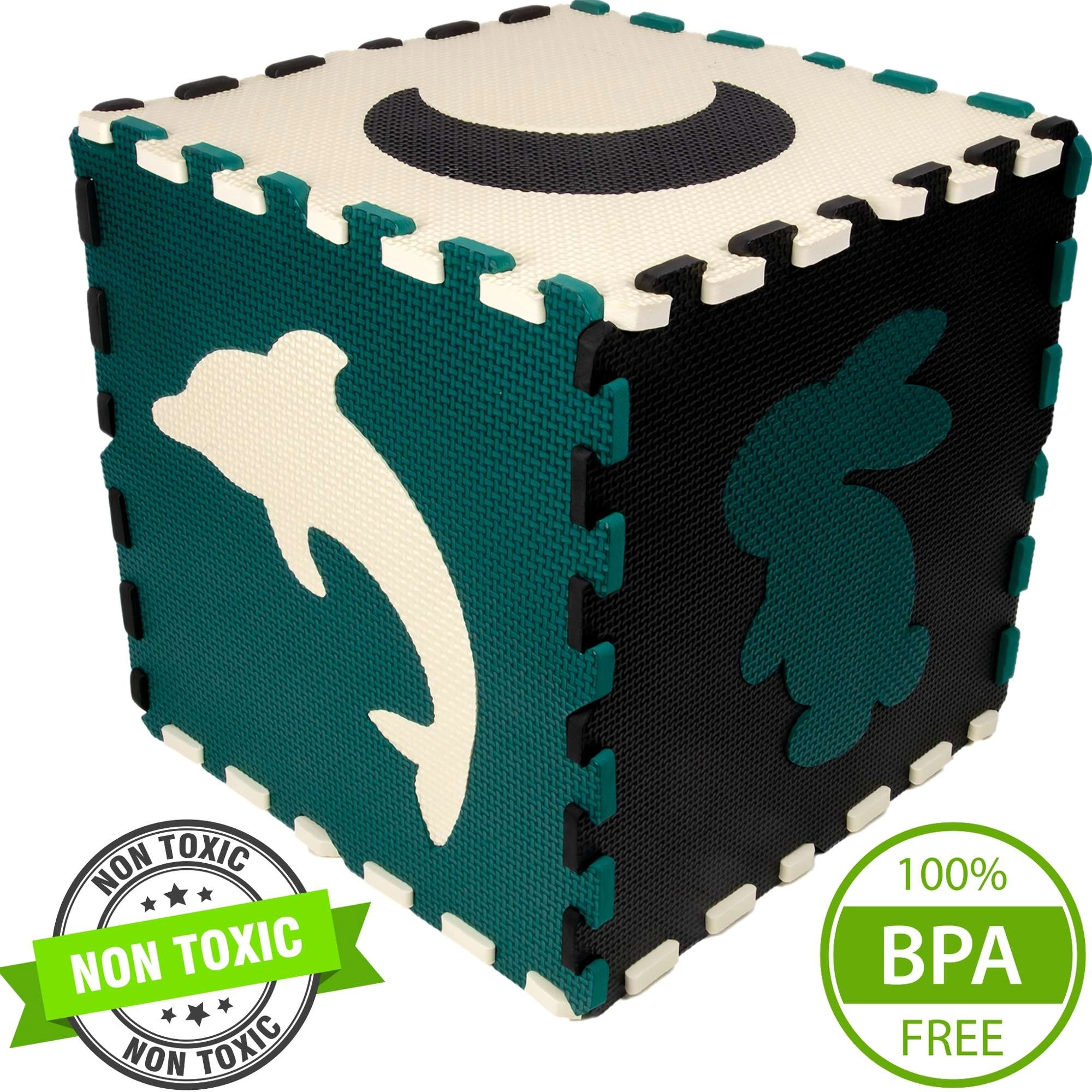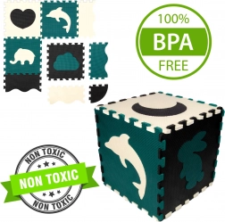 Az elemek 3D kirakóként is szolgálnak – a kivehető állat- és alakzatmotívumok összekapcsolhatók és térbeli tárgyakká rakhatók össze (pl. kocka), ezáltal a gyermek fejleszti a térbeli képzelőerejét, a fogást és a koordinációt. Az EVA anyag ftalát-, formamid-, BPA- és PVC-mentes, megfelel az EN 71 és a REACH előírásainak, valamint CE jelöléssel rendelkezik.