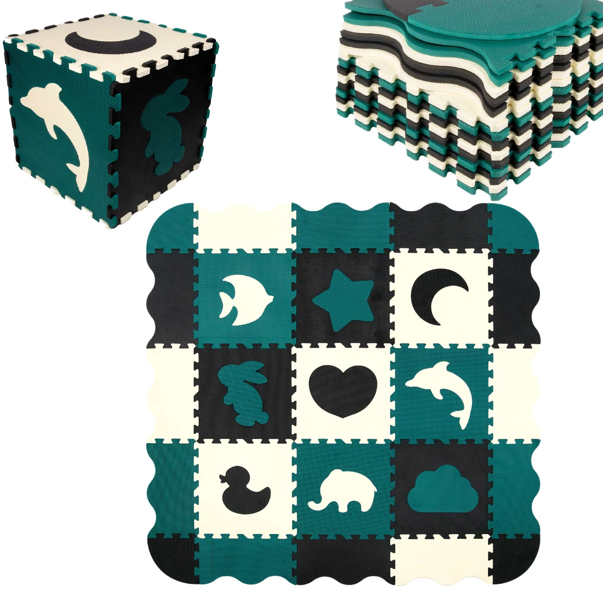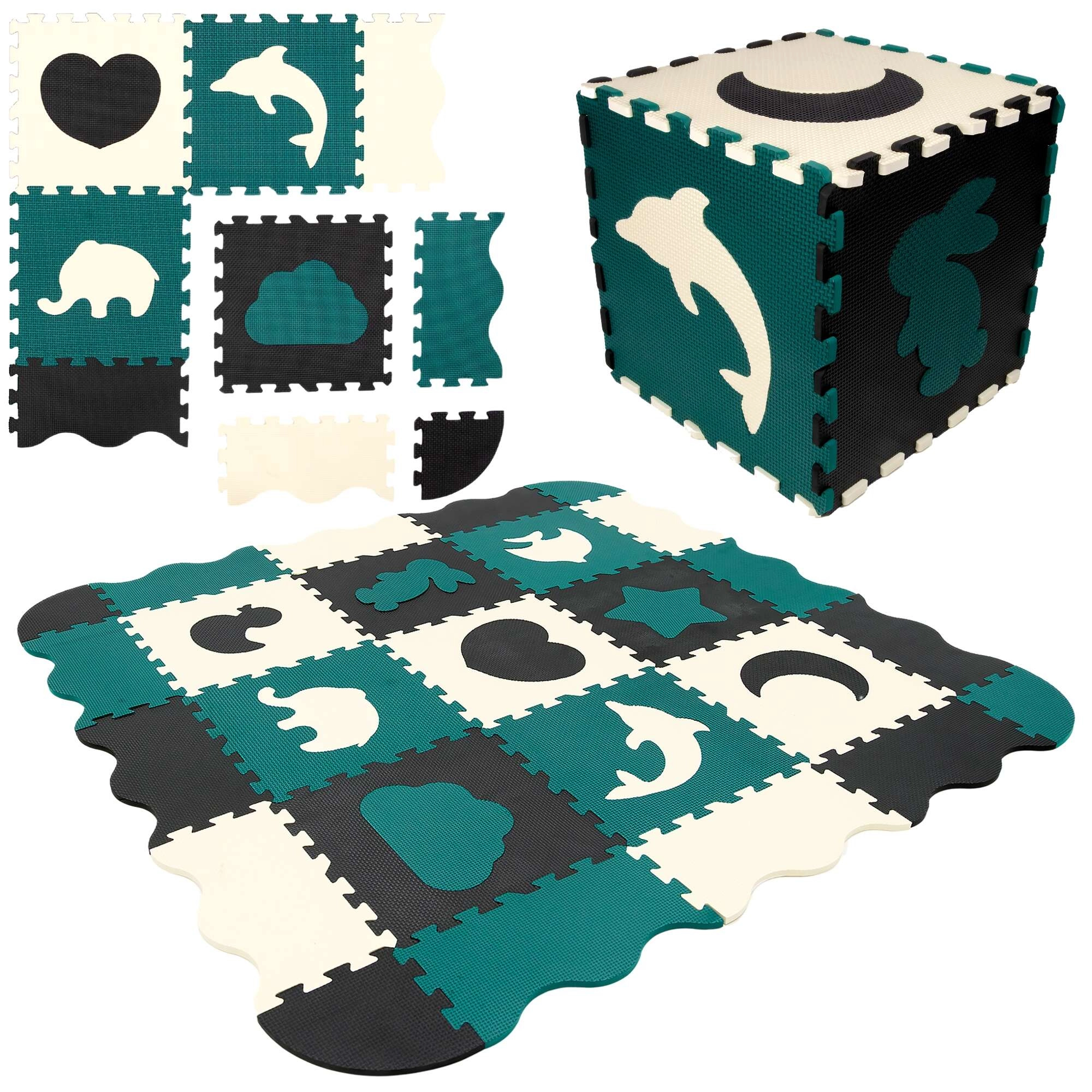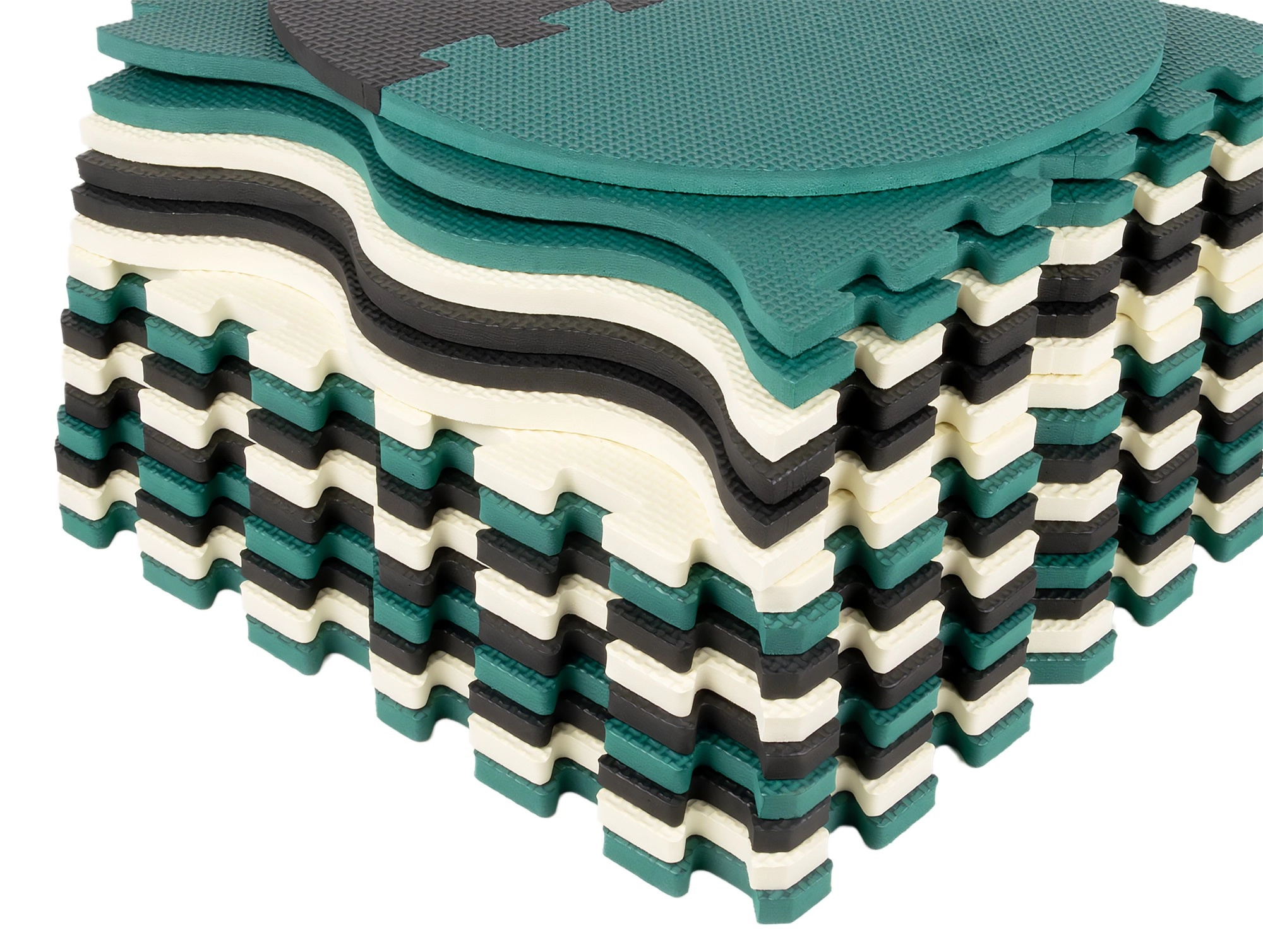 Az elemek 3D kirakóként is szolgálnak – a kivehető állat- és alakzatmotívumok összekapcsolhatók és térbeli tárgyakká rakhatók össze (pl. kocka), ezáltal a gyermek fejleszti a térbeli képzelőerejét, a fogást és a koordinációt. Az EVA anyag ftalát-, formamid-, BPA- és PVC-mentes, megfelel az EN 71 és a REACH előírásainak, valamint CE jelöléssel rendelkezik.