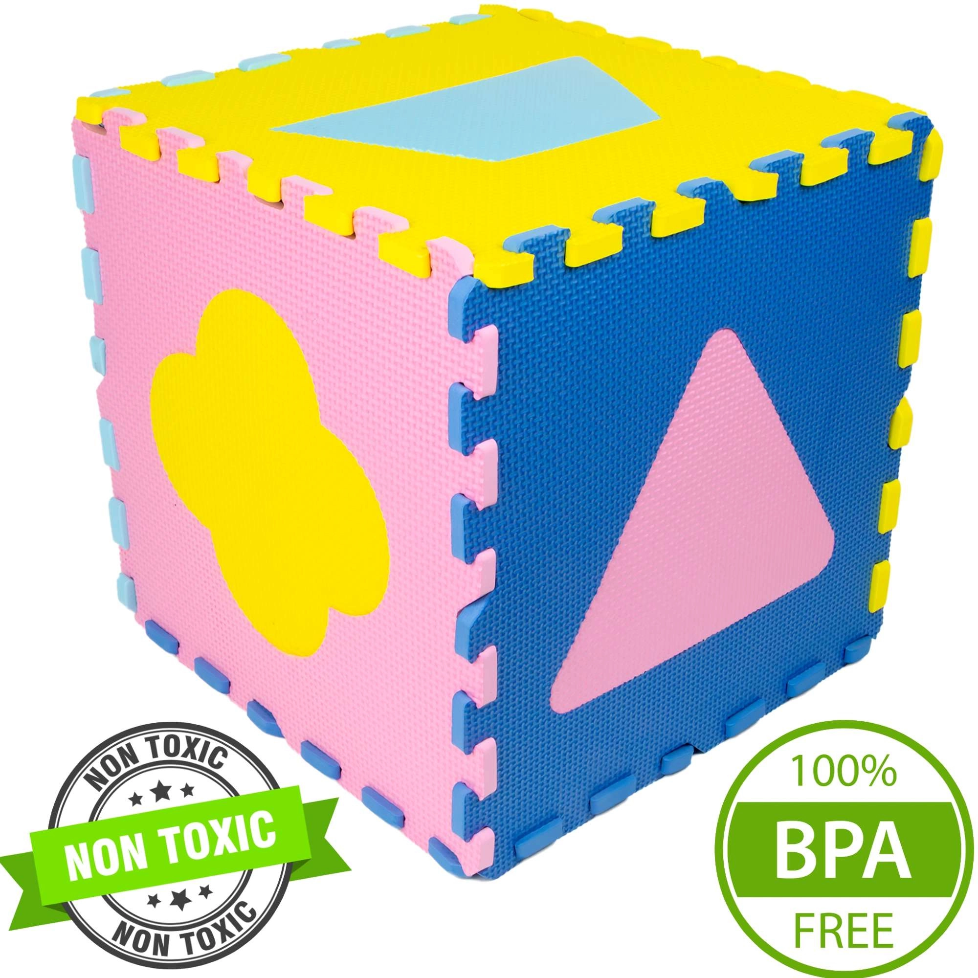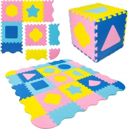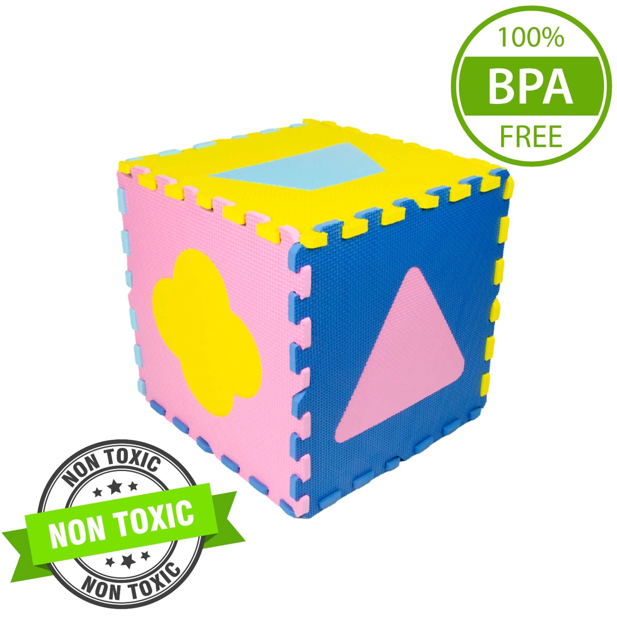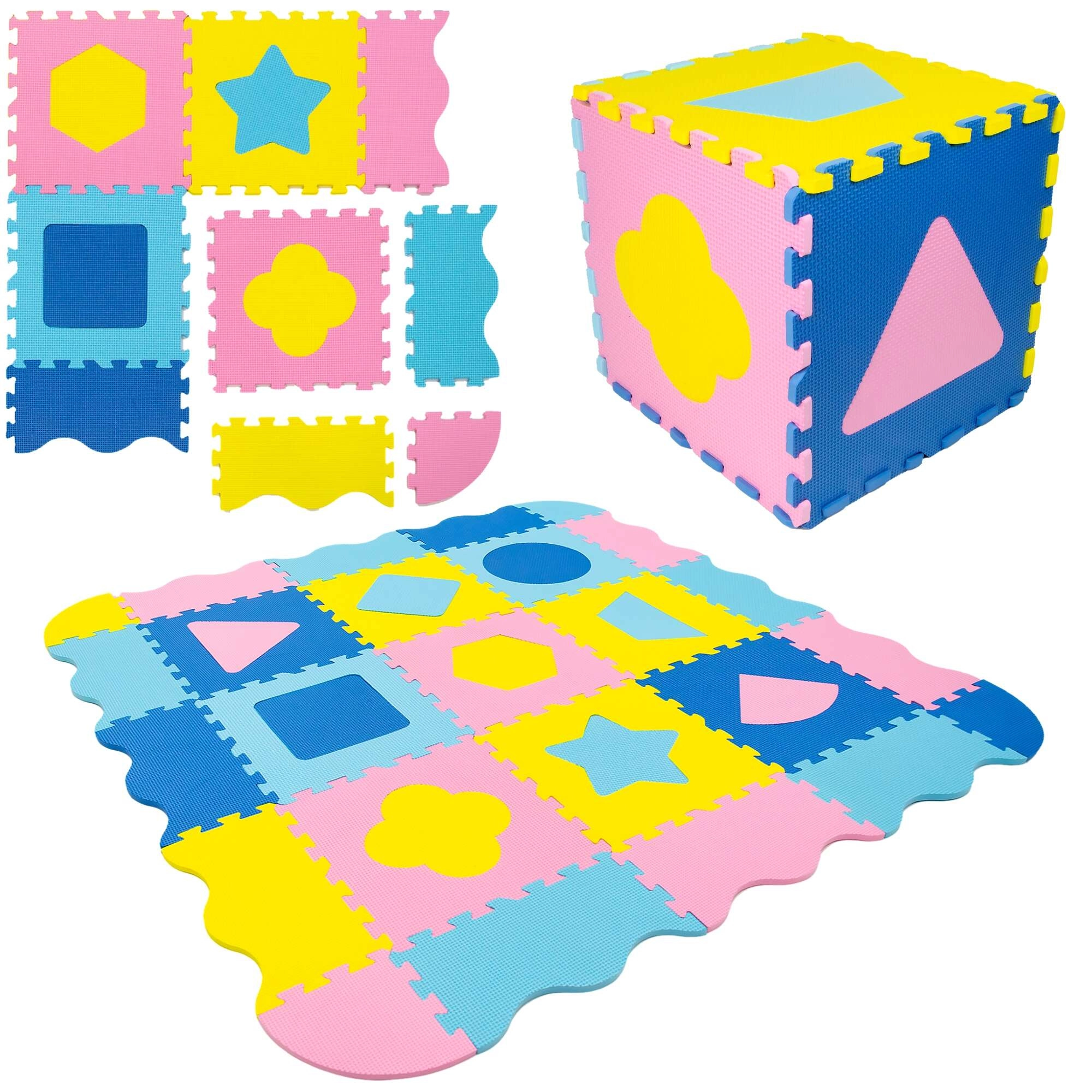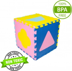 Az oktató elemek, azaz a kivehető formák (kör, háromszög, négyzet, csillag stb.) fejlesztik a finommotorikát, valamint a formák és színek tanulását. Az elemek könnyen szétszedhetők és elrakhatók – helytakarékos. Nagyobb felülethez több, azonos modellű készlet összekapcsolható.