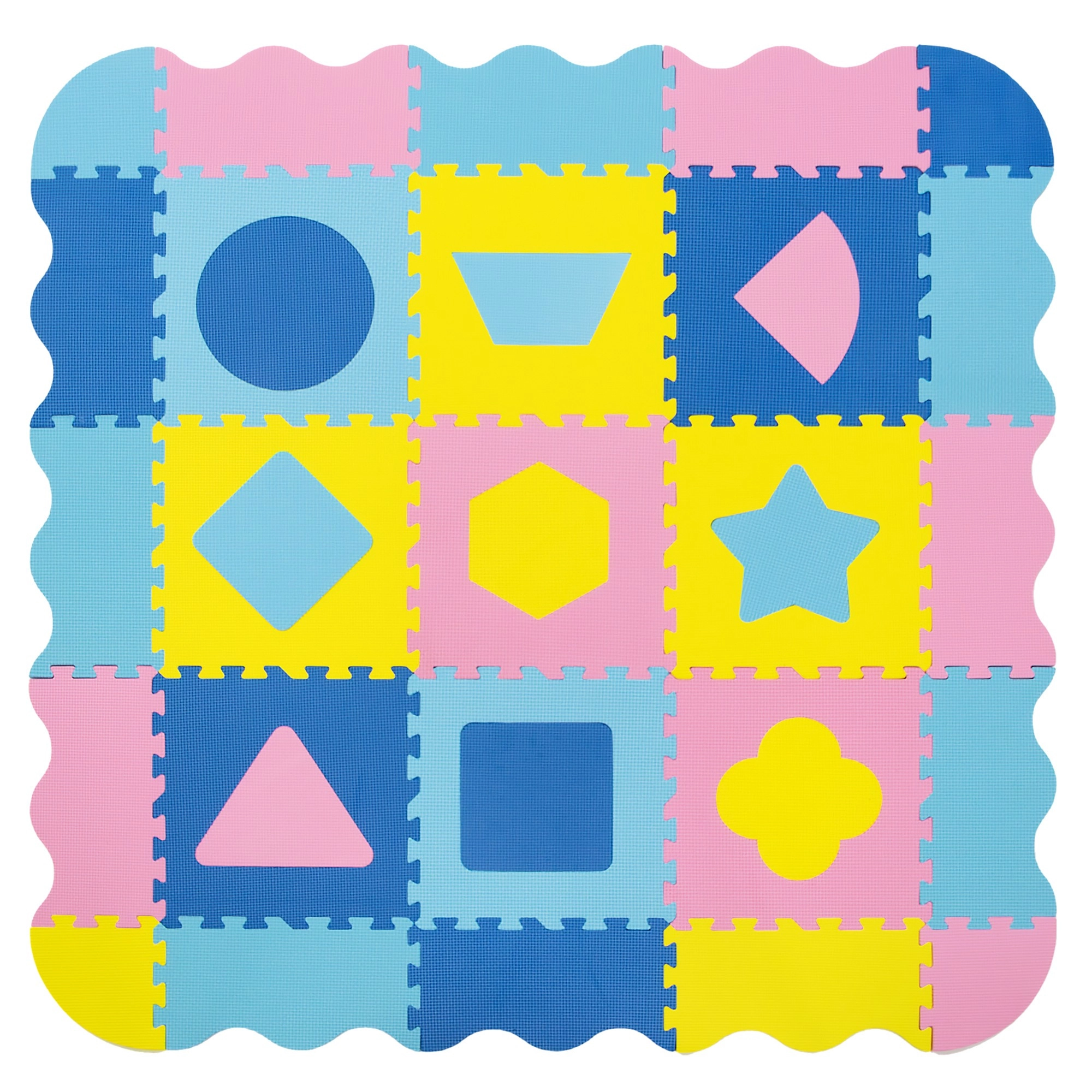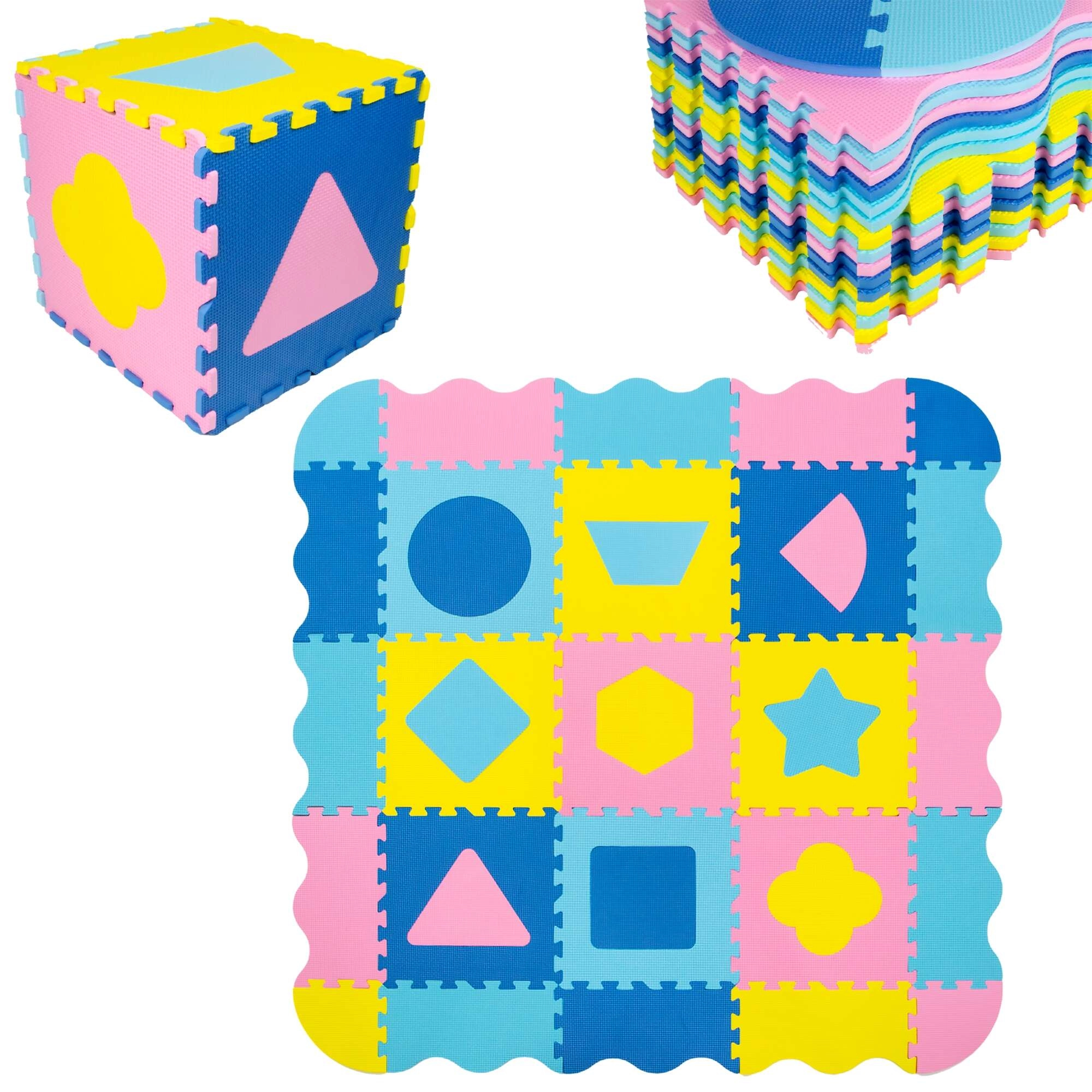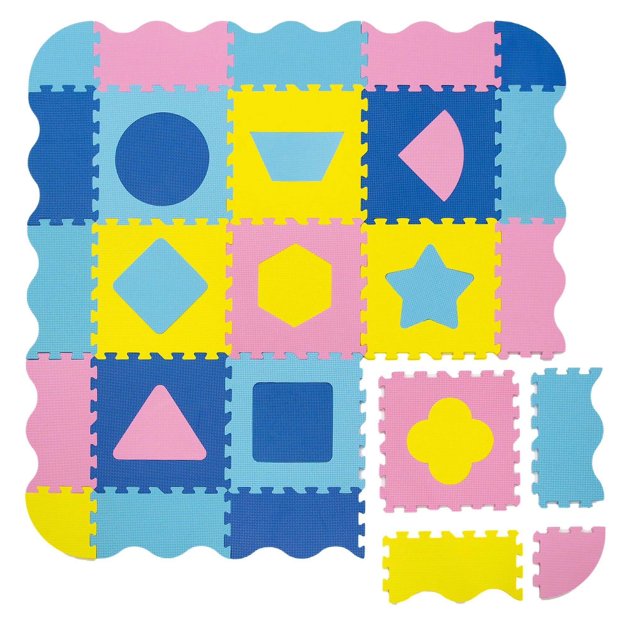Az oktató elemek, azaz a kivehető formák (kör, háromszög, négyzet, csillag stb.) fejlesztik a finommotorikát, valamint a formák és színek tanulását. Az elemek könnyen szétszedhetők és elrakhatók – helytakarékos. Nagyobb felülethez több, azonos modellű készlet összekapcsolható.