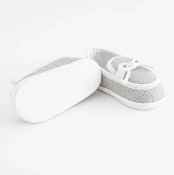A talp vékony, BPA-mentes PVC szintetikus anyagból készül, amely véd, ugyanakkor nem korlátozza a felület érzékelését. A felső csipke 100% poliészter. A cipők praktikus díszdobozban érkeznek, és ideálisak babakocsiba, otthonra vagy látogatásokra. A termék nem járásra készült.