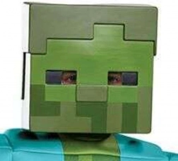 A vállak kockás formája és a blokkos maszk pillanatok alatt legendás Minecraft zombivá változtatja a gyermeket.