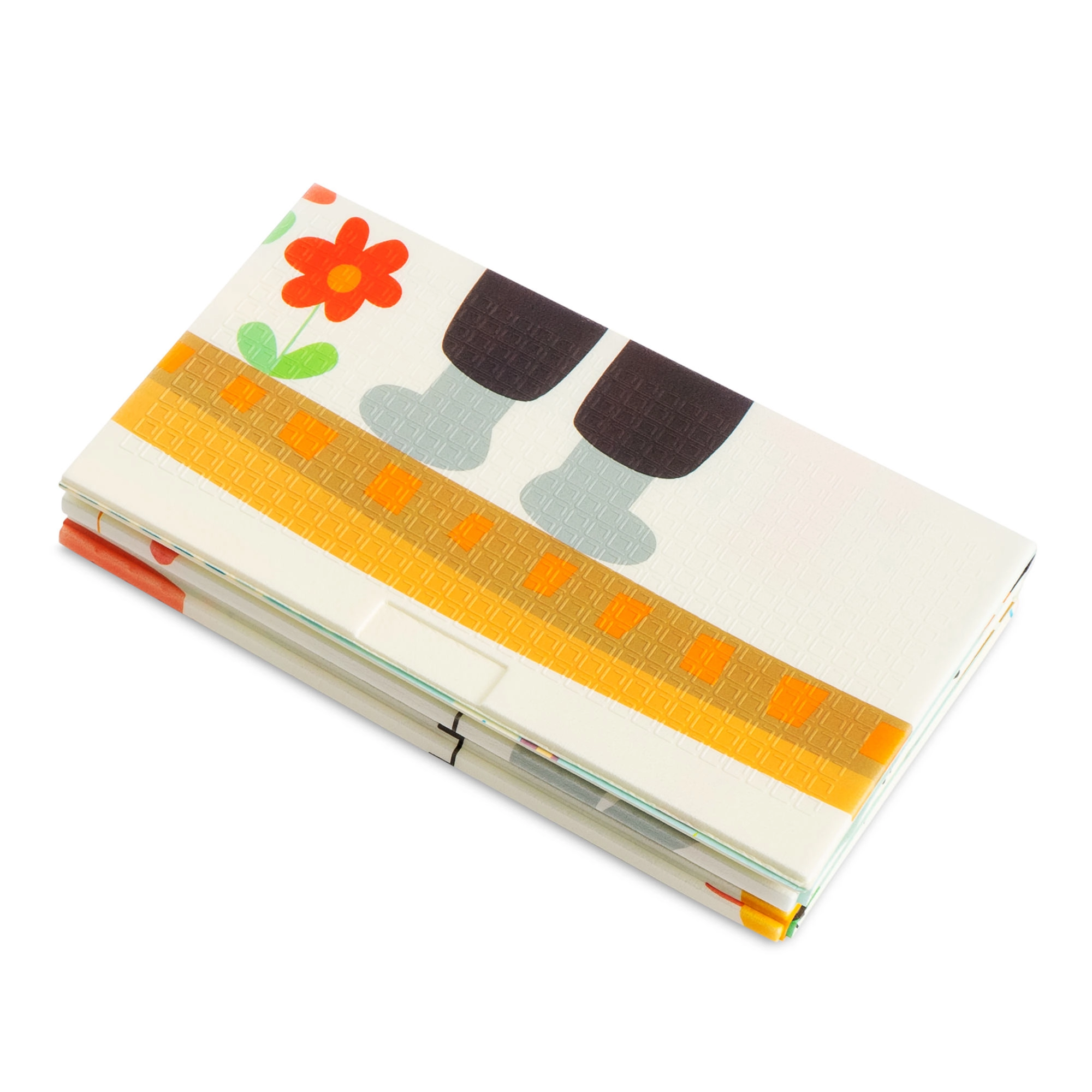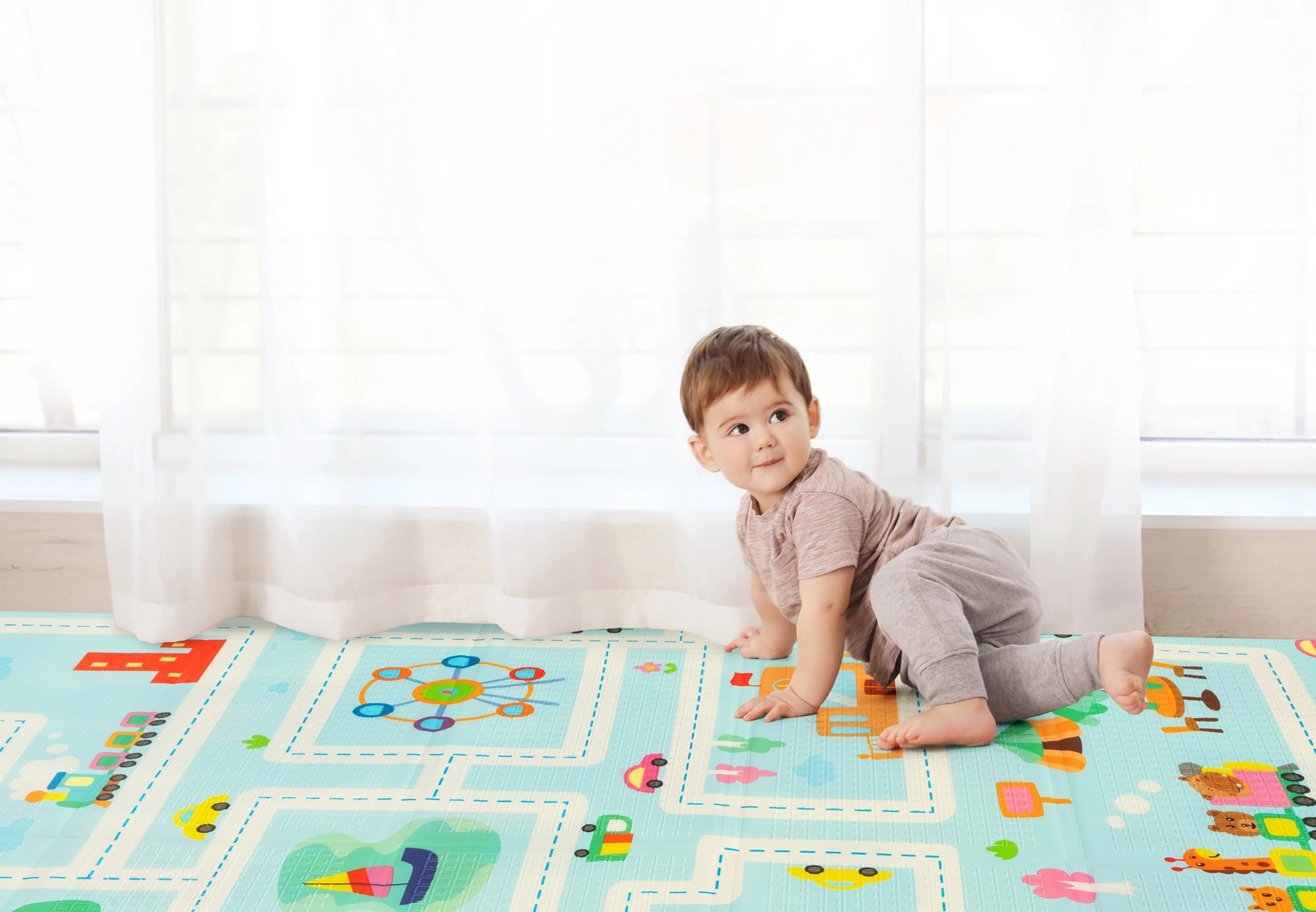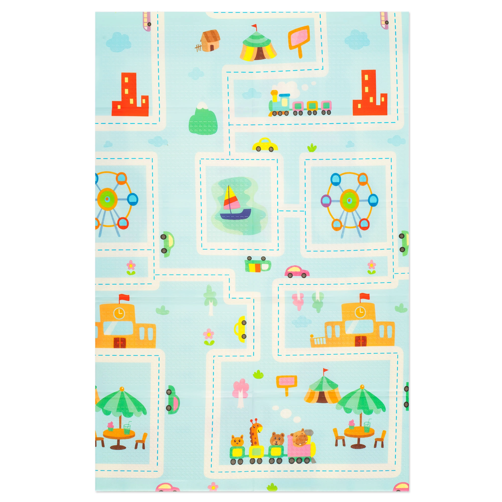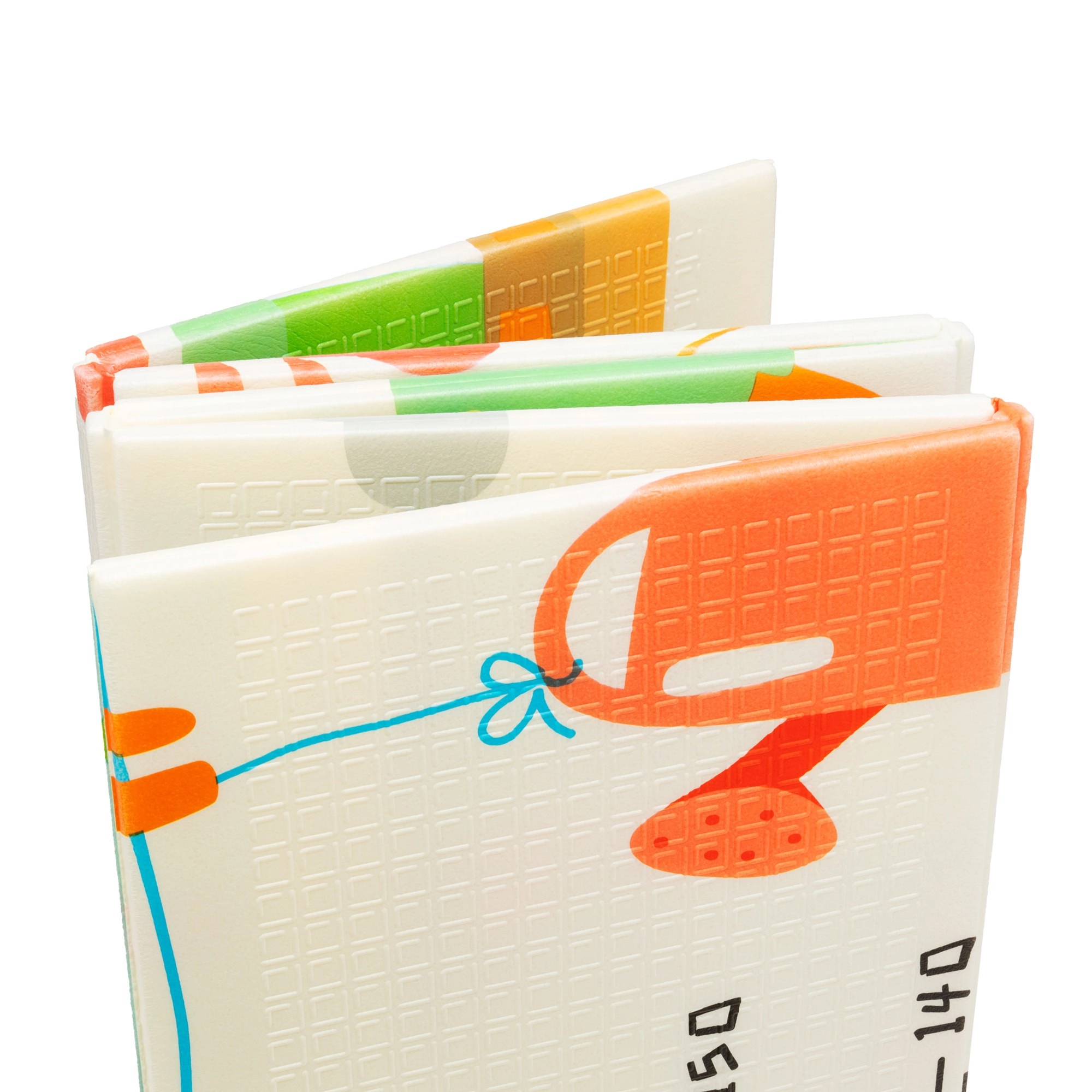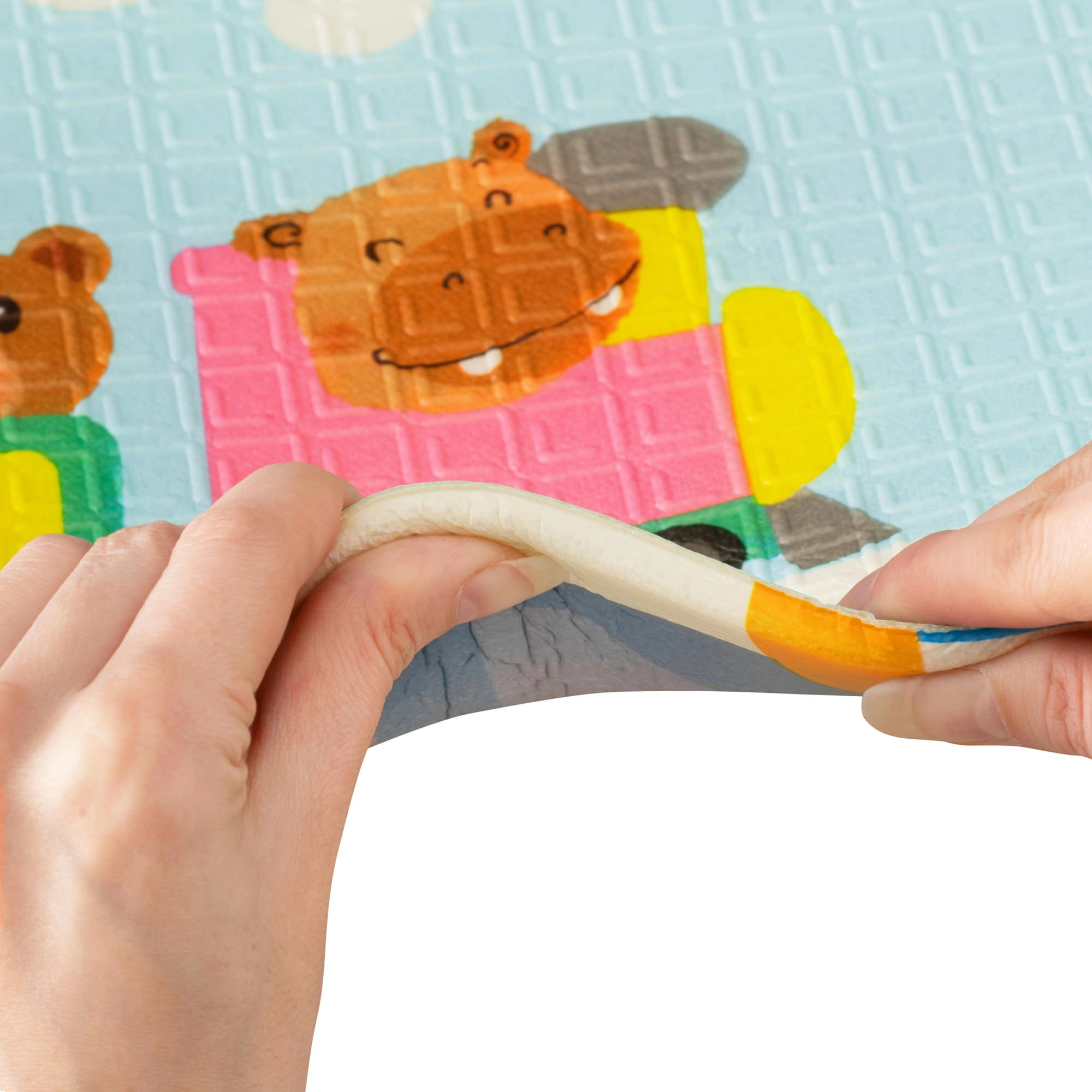 A kétoldalas dizájn két edukatív mintát kínál: vidám állatok magasságmérővel a növekedés követéséhez, valamint színes utak épületekkel és járművekkel a fantázia fejlesztésére. A szőnyeget néhány másodperc alatt összehajtod, könnyen elrakod, és a mellékelt cipzáras táskának köszönhetően bárhová magaddal viheted – nappaliba, gyerekszobába, erkélyre, kertbe vagy utazáshoz.