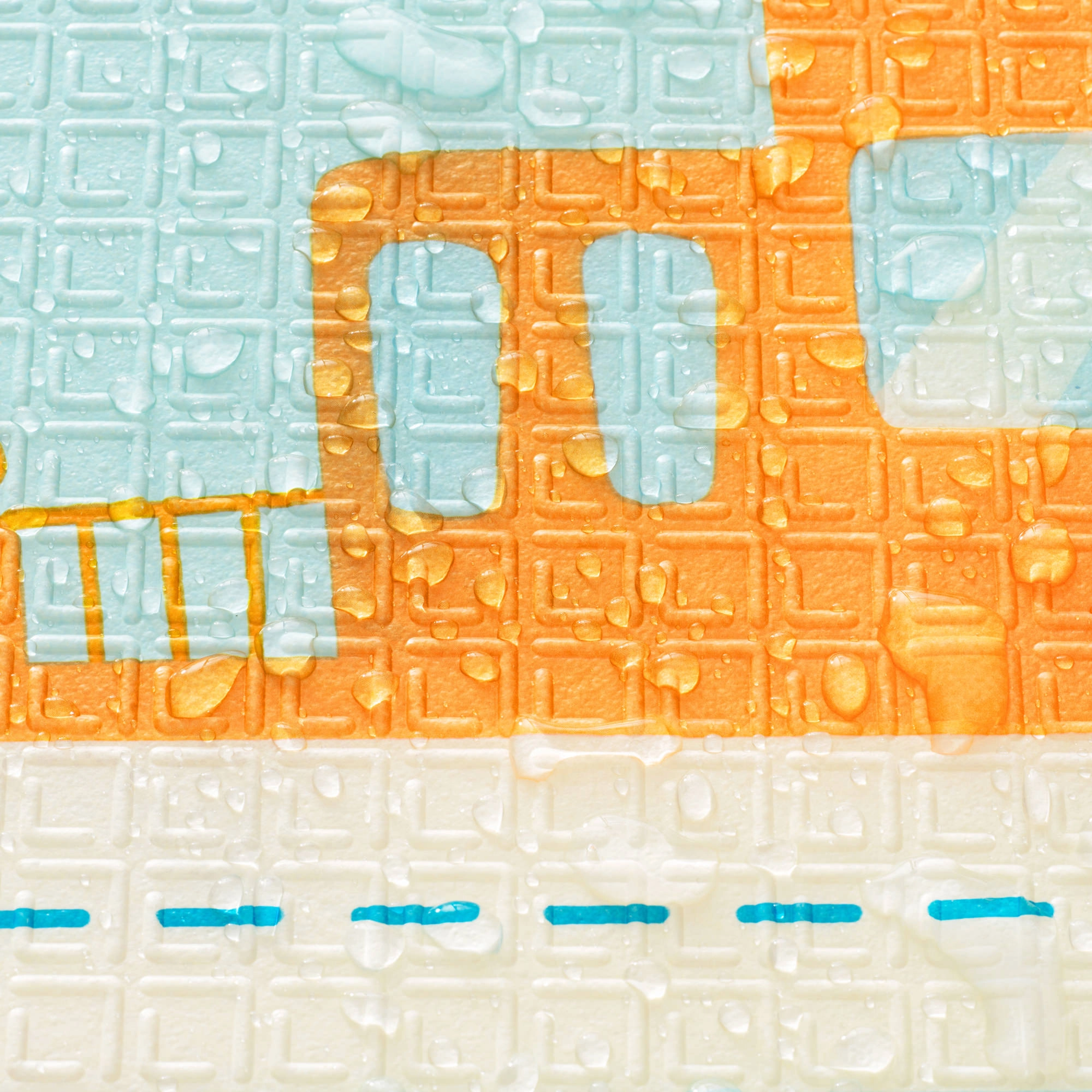 A vastag, rugalmas és nem mérgező XPE hab kiválóan tompítja az eséseket, szigetel a hideg padlótól és szagtalan. Felülete vízálló és könnyen tisztítható.