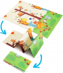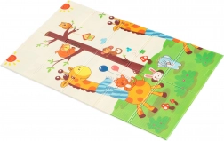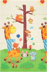 A XPE prémium hab szagtalan, nem mérgező és kopásálló. 0,8 cm vastagságának köszönhetően kiválóan csillapítja az ütéseket és szigetel a hideg padlótól. Mindkét oldalt tetszetős minták díszítik – az egyik oldalon aranyos zsiráfok, a másikon állatkák színes háttéren – amelyek támogatják a gyermekek vizuális fejlődését.