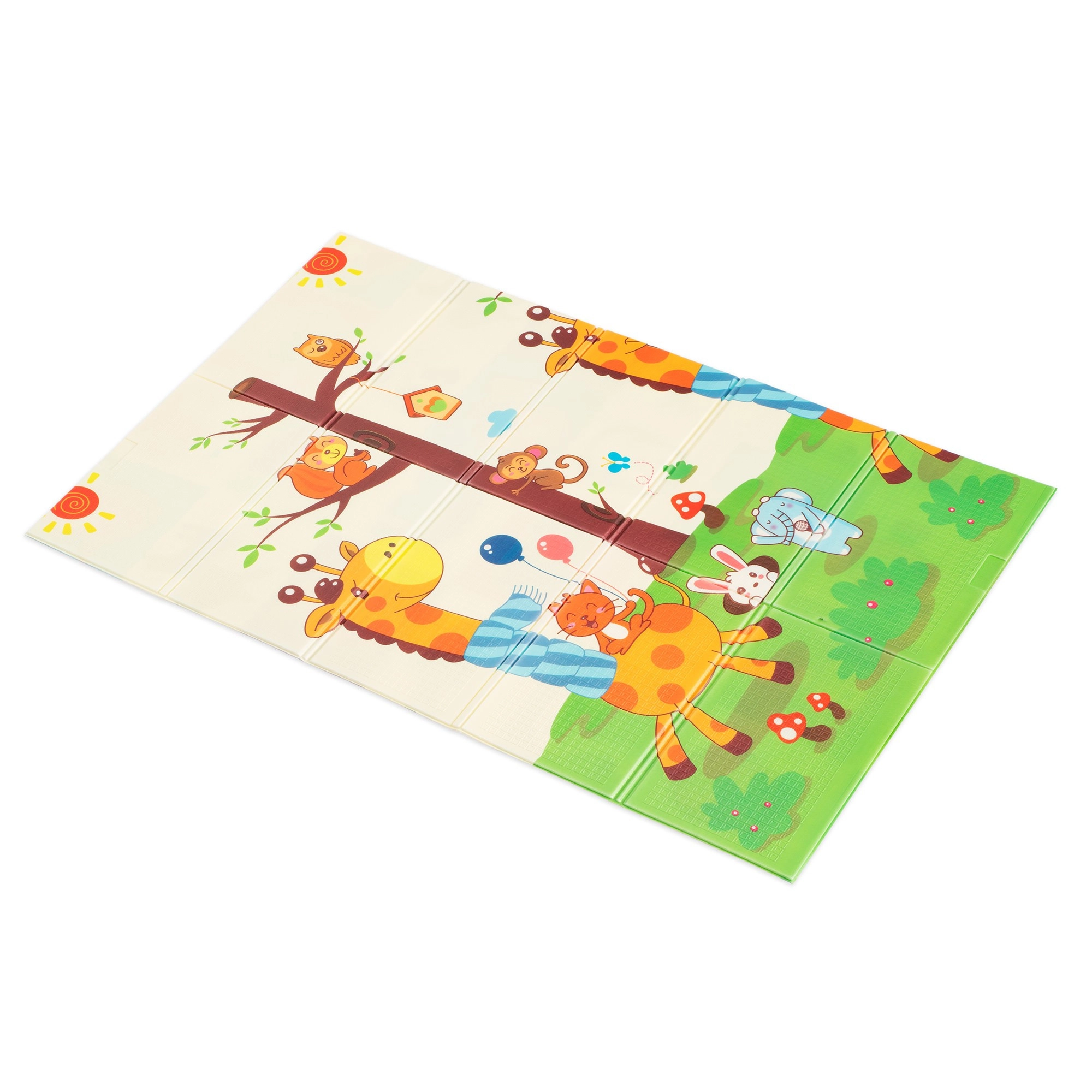 A szőnyeg 100%-ban biztonságos: nem tartalmaz formamidot, ftalátokat, PVC-t és BPA-t, CE jelöléssel rendelkezik, és megfelel az európai EN71-1, EN71-2, EN71-3 és REACH szabványoknak. Ideális születéstől a mindennapi játékhoz otthon és a szabadban – gyerekszobába, nappaliba, erkélyre vagy kertbe.