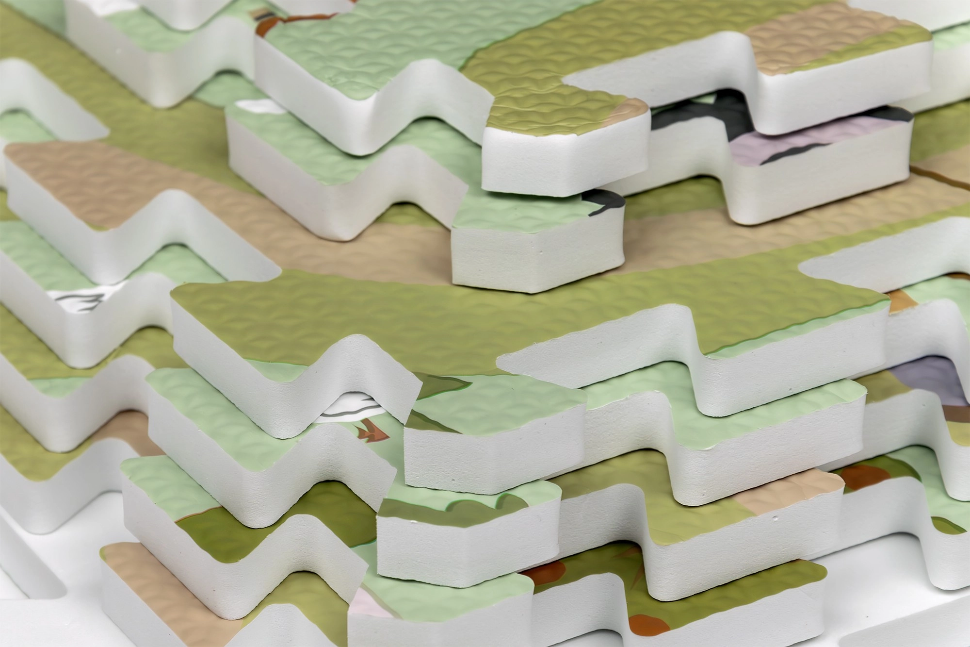 Az alátét rugalmas EVA habból készül, ftalát-, formamid-, BPA- és PVC-mentes, megfelel az EN 71 és a REACH szabványoknak, és CE jelöléssel rendelkezik. Vízálló, higiénikus, könnyen tisztítható – elég egy nedves ronggyal áttörölni – és a szegélyeknek köszönhetően tiszta, esztétikus felületet ad.