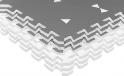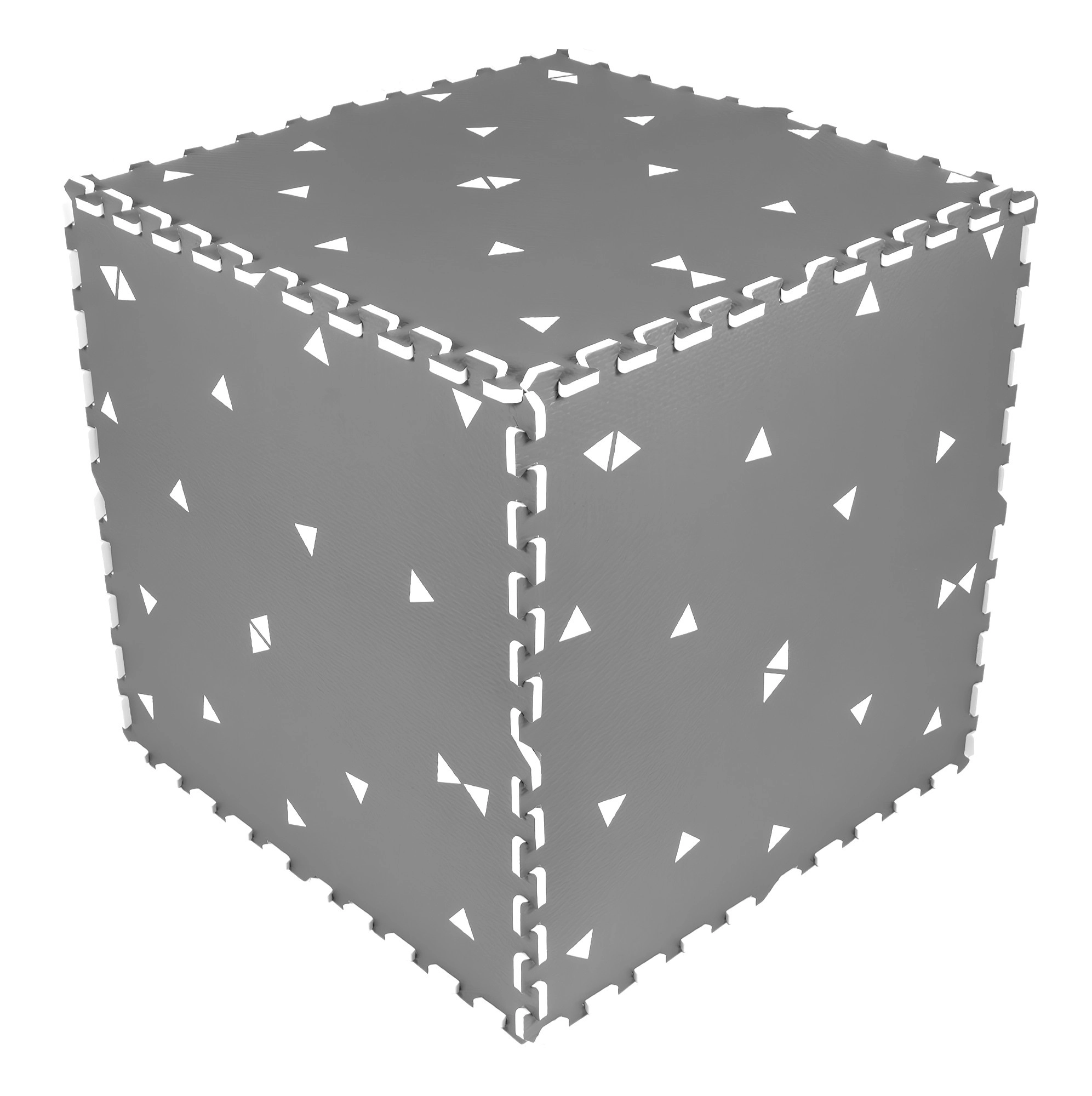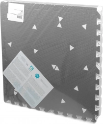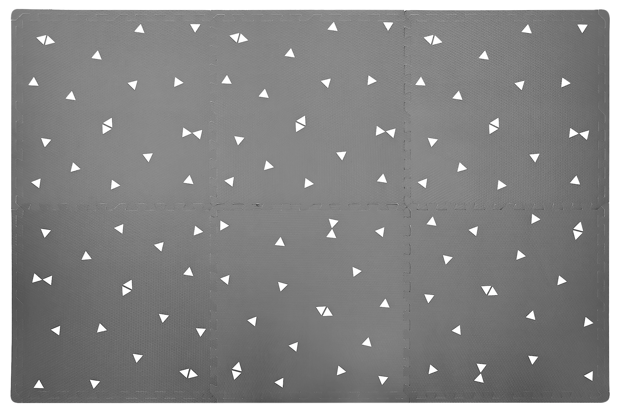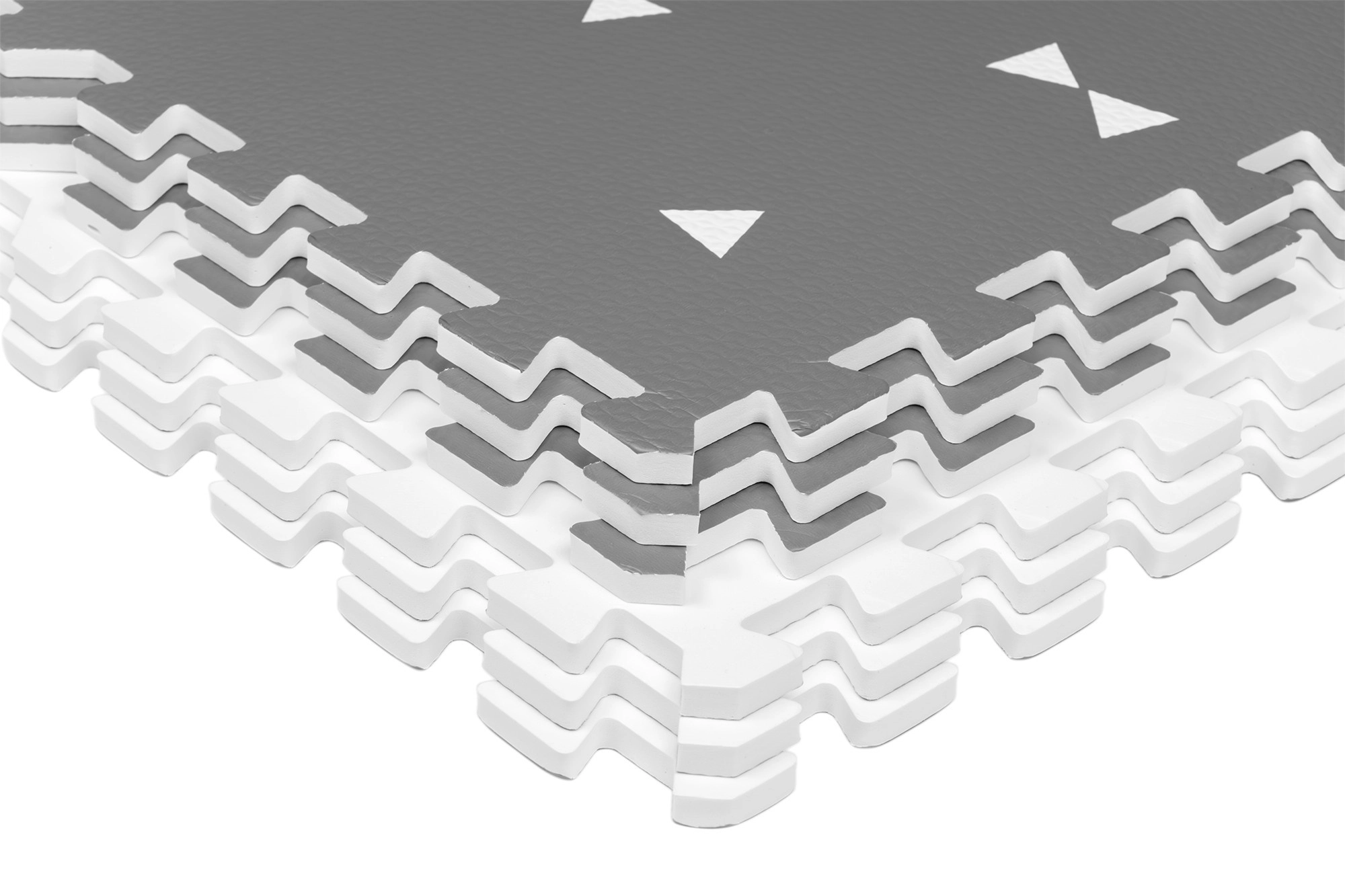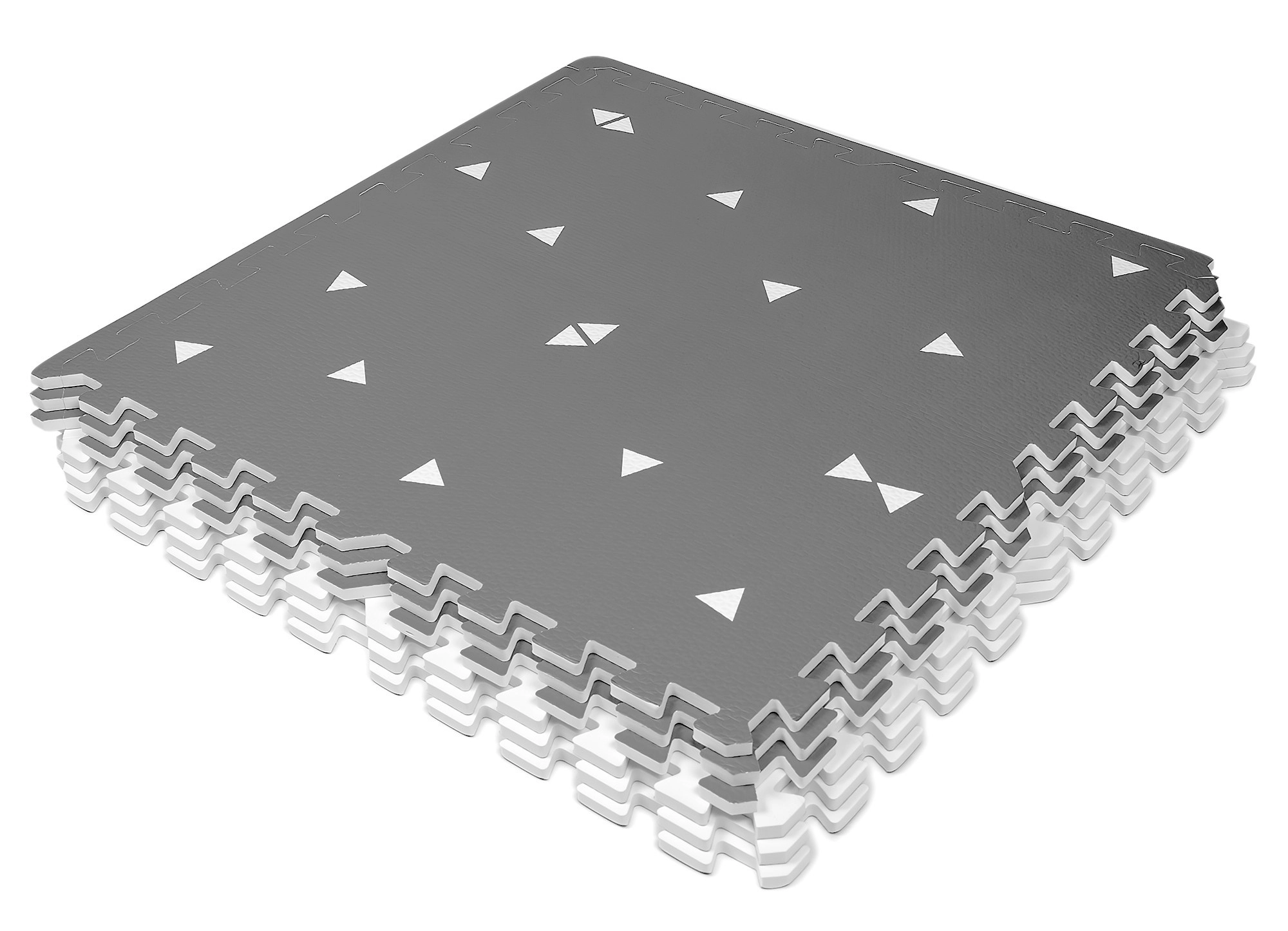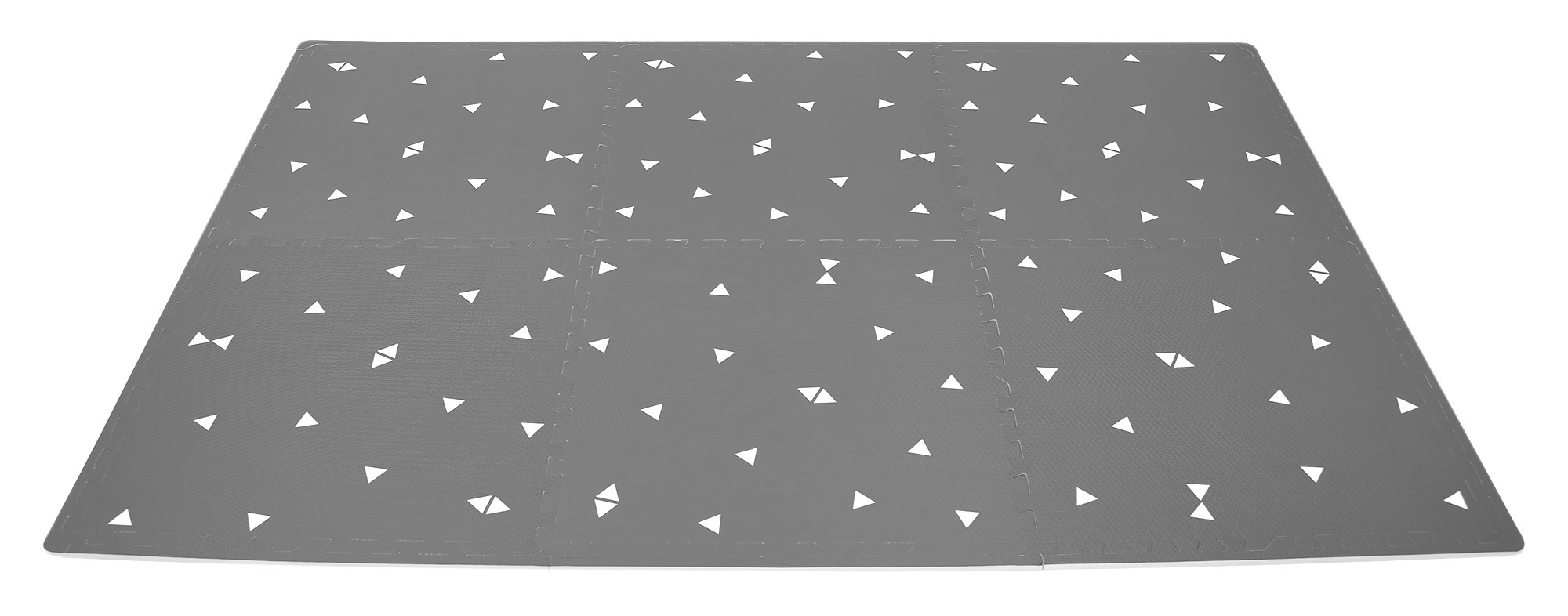 A HUMBI habszivacs játszószőnyeg a babák és totyogók számára biztonságos helyet teremt játékhoz, kúszáshoz és az első lépésekhez. Az 1 cm-es vastagságnak köszönhetően kiválóan szigeteli a hideget és elnyeli az ütéseket kemény burkolatokon, például járólapon, parkettán vagy laminált padlón. A visszafogott szürke, háromszöges dizájn illik a modern enteriőrökhöz.