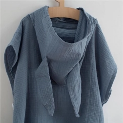 A New Baby Feeling könnyű és nedvszívó gyerek muszlin poncsó kék színben ideális fürdés után otthon, a medencénél vagy a vízparton. 100% pamut anyagának köszönhetően légáteresztő, kíméletes a bőrhöz, és kiválóan véd a hidegtől. A praktikus, bő szabás aranyos fülecskékkel és oldalsó patentokkal megkönnyíti az öltözködést, és együtt nő a gyermekkel.