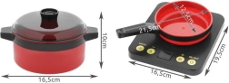 Ez a sokoldalú készlet remekül utánozza a valódi konyhai eszközöket és berendezéseket. Az átgondolt összeállításnak köszönhetően a gyerekek megtanulhatják, hogyan készítsenek „finomságokat”, miközben fejlesztik finommotorikájukat, képzeletüket és a együttműködést a közös játék során szülőkkel vagy testvérekkel. A fekete, szürke és élénk piros elegáns színkombinációja modern hatást kelt, és lányoknak, fiúknak egyaránt illik.