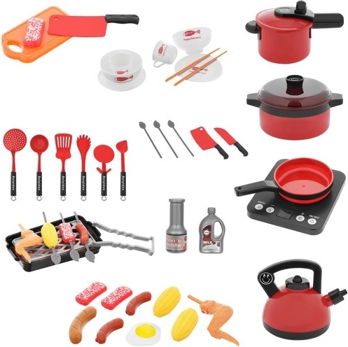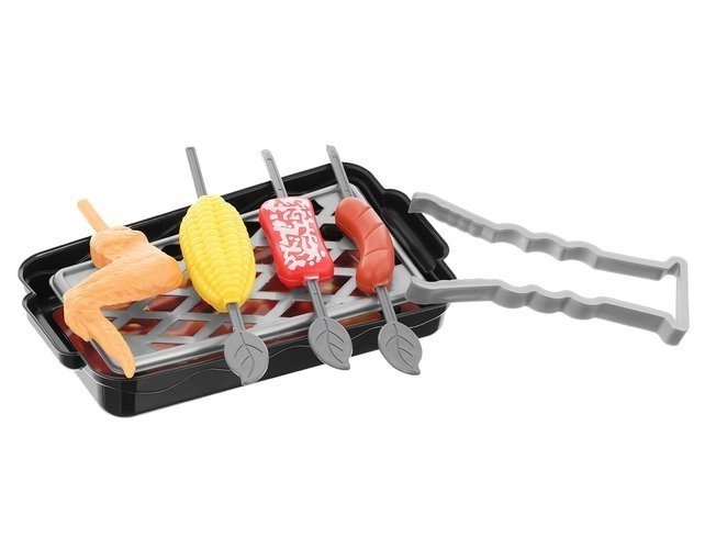 A csomagban többek között grill rácstal, indukciós főzőlap, kukta és lábas, serpenyő, kanna, vágódeszka és biztonságos kések, konyhai eszközök (merőkanalak, spatulák, csipesz), edények (tálkák, tányérok, bögrék), valamint „élelmiszerek” és fűszerek találhatók a valósághű játékért.