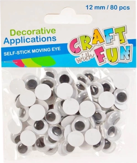 Készítsen egyedi dekorációkat és vidám projekteket ezekkel a mozgó, öntapadós szemekkel. A csomag 80 db szemet tartalmaz mozgó fekete pupillával, ideális kézműveskedéshez, scrapbookhoz és egyéb kreatív munkákhoz. 3 éves kortól ajánlott.
