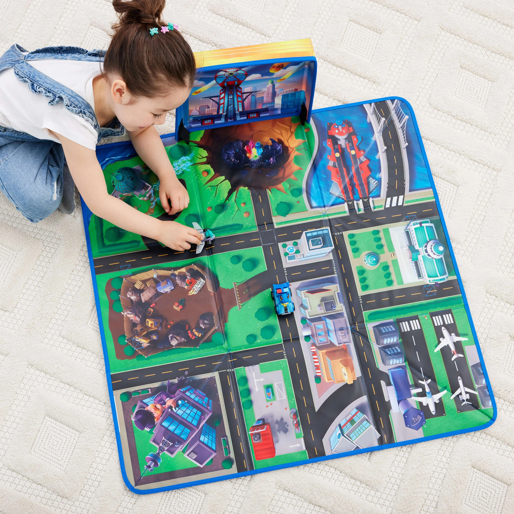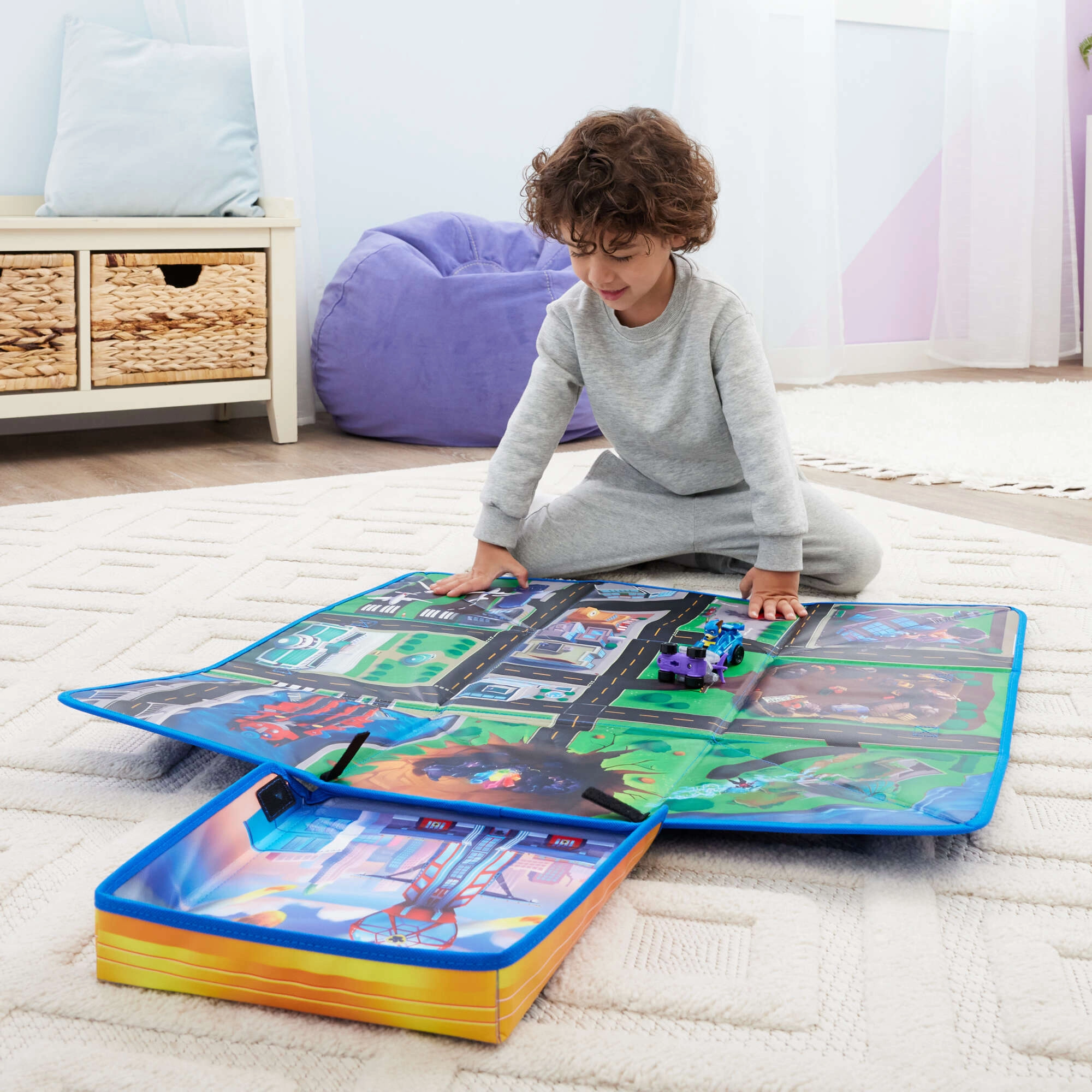 Ez az összehajtható szőnyeg, amelyet a PAW Patrol: The Mighty Movie film inspirált, a gyerekszobába varázsolja egész Kalandvárost – utcákkal, kereszteződésekkel, híddal és repülőtérrel. A felület puha, színes, és hívogat az autókkal és a kedvenc hősök figuráival való képzeletbeli játékra.