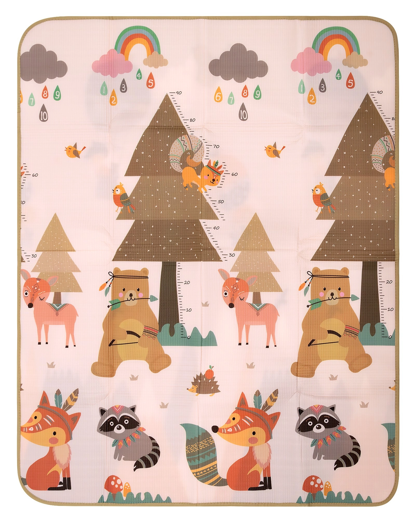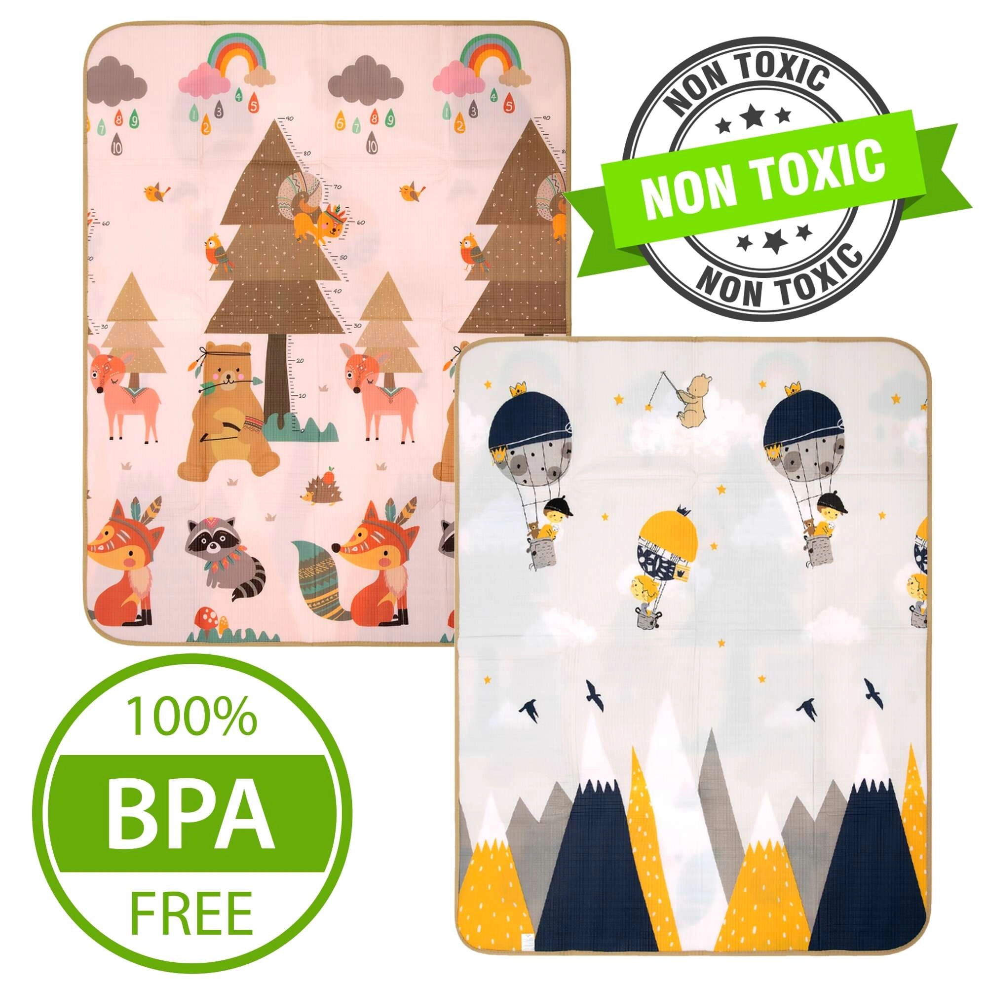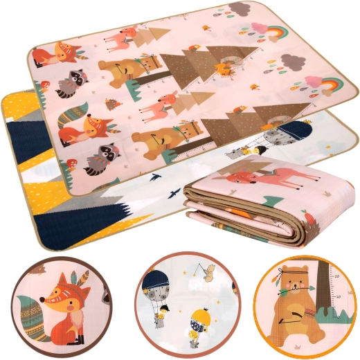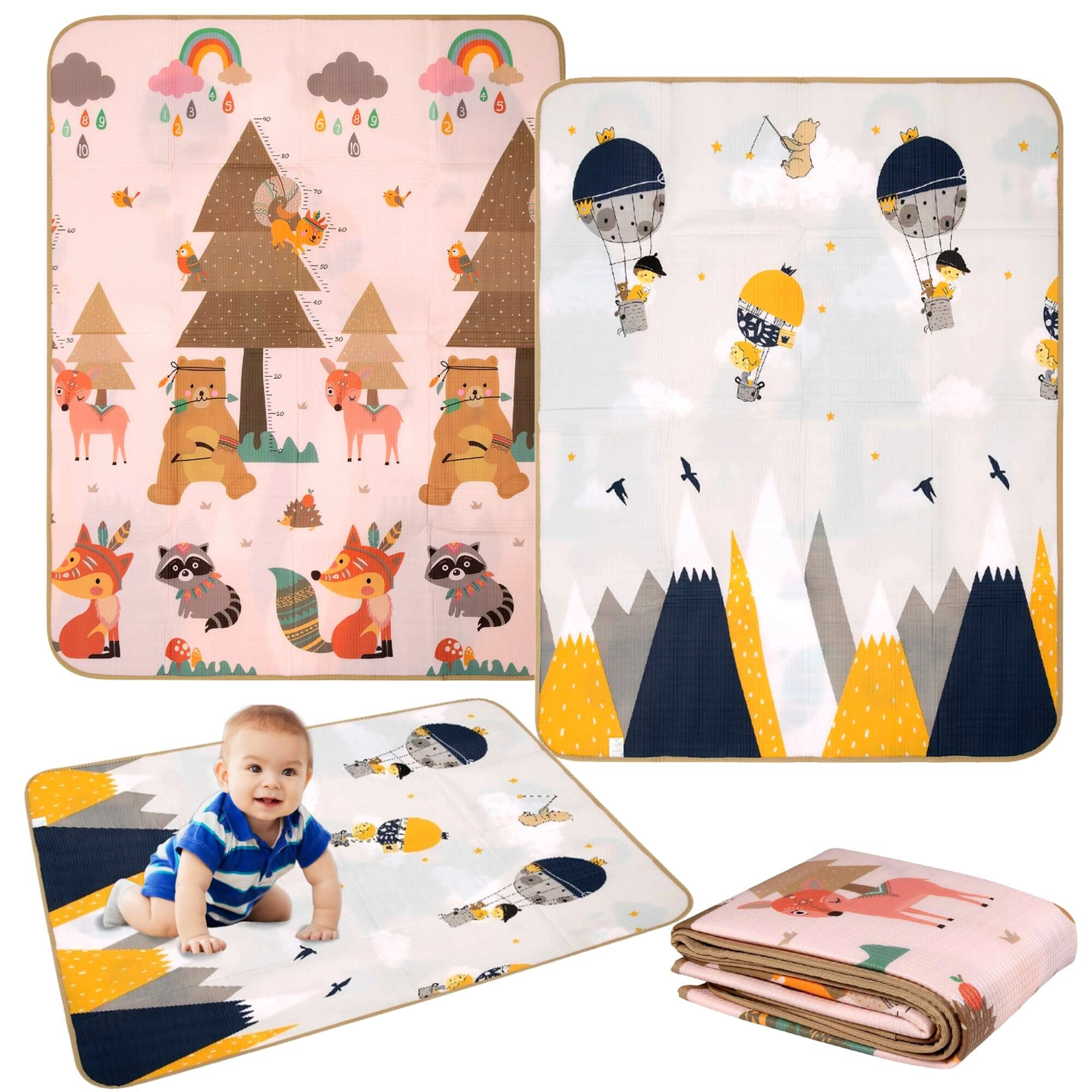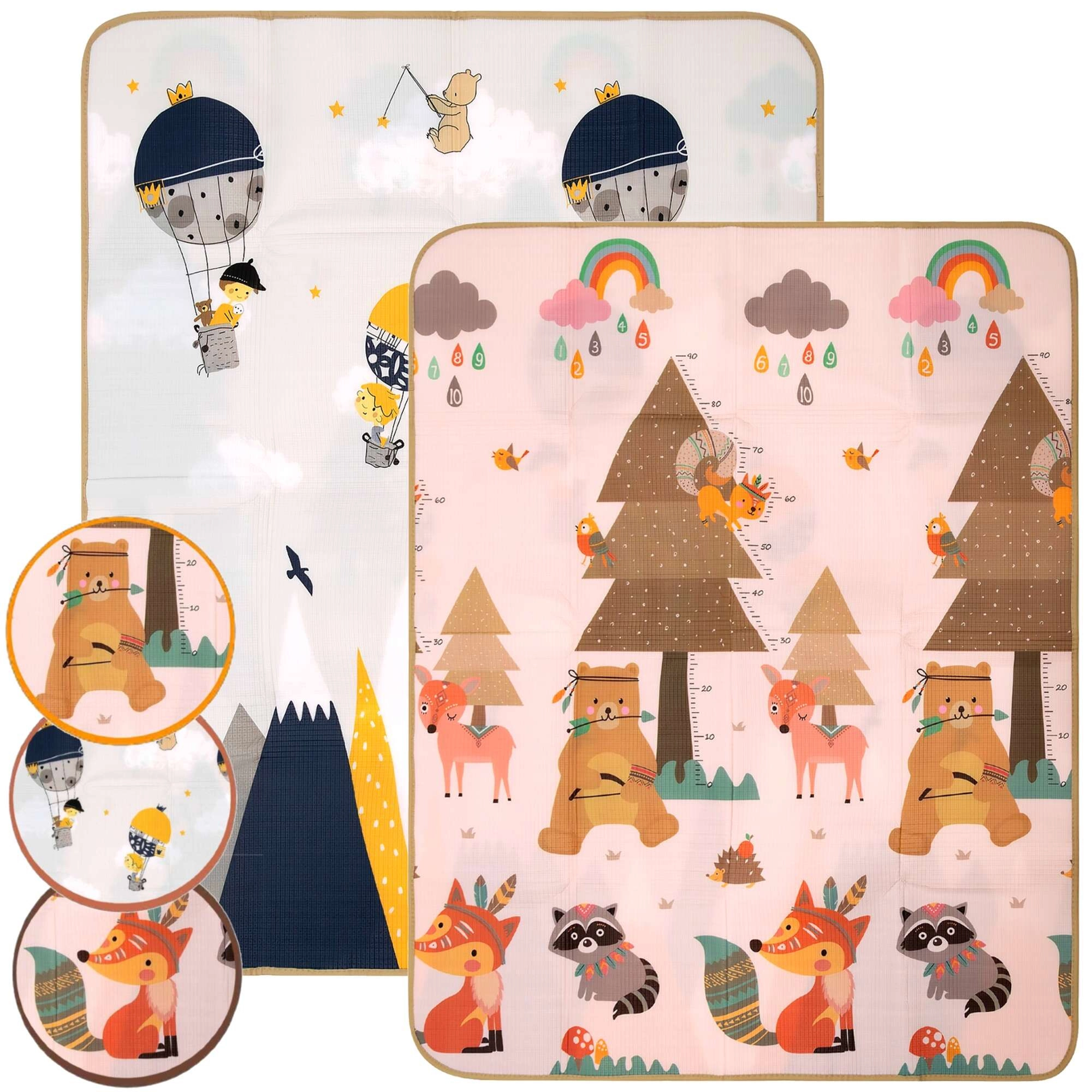 - Kétoldalas 2 az 1-ben dizájn – állatok, hegyek, léggömbök és növekedési mérce
