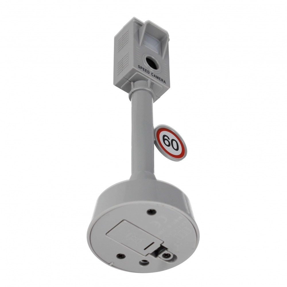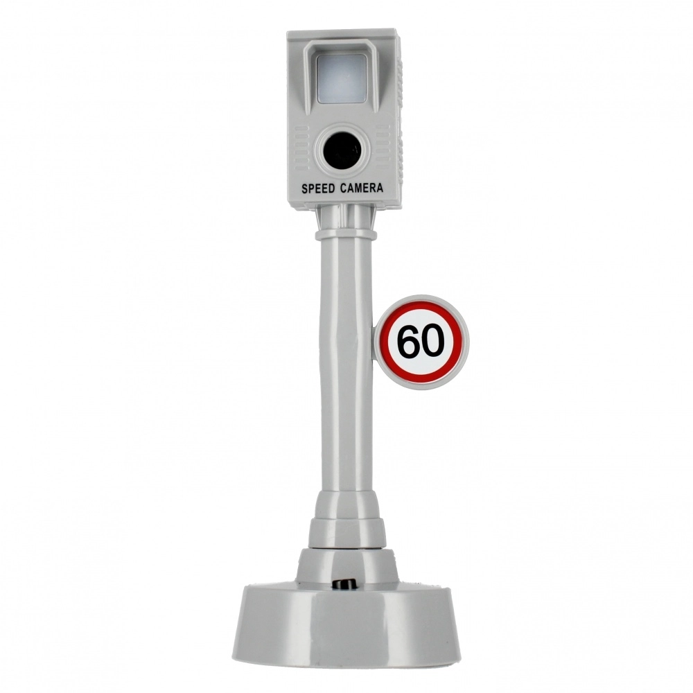 A jelzőlámpa színváltással irányítja a kereszteződést, a radar gombnyomásra fényképező-hanggal és felvillanással reagál – ideális a valósághű játékhoz.