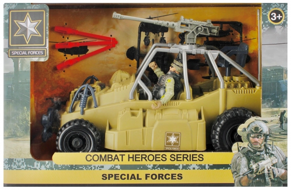A csomag része a fegyverzet és a kiegészítők, amelyek az autóra rögzíthetők, így a gyerekek saját különleges műveleti történeteket alkothatnak.