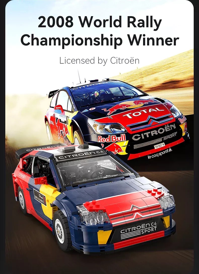 Élvezd a precíz építést és a valósághű kidolgozást a legendás CITROËN C4 WRC (2008) licencelt, 1:12 méretarányú változatán. A CADA modell átgondolt felépítésével, sok mozgó résszel és hiteles külső-belső részletekkel tűnik ki, beleértve a ralis grafikájú színes karosszériát, az üléseket és a kormányt.