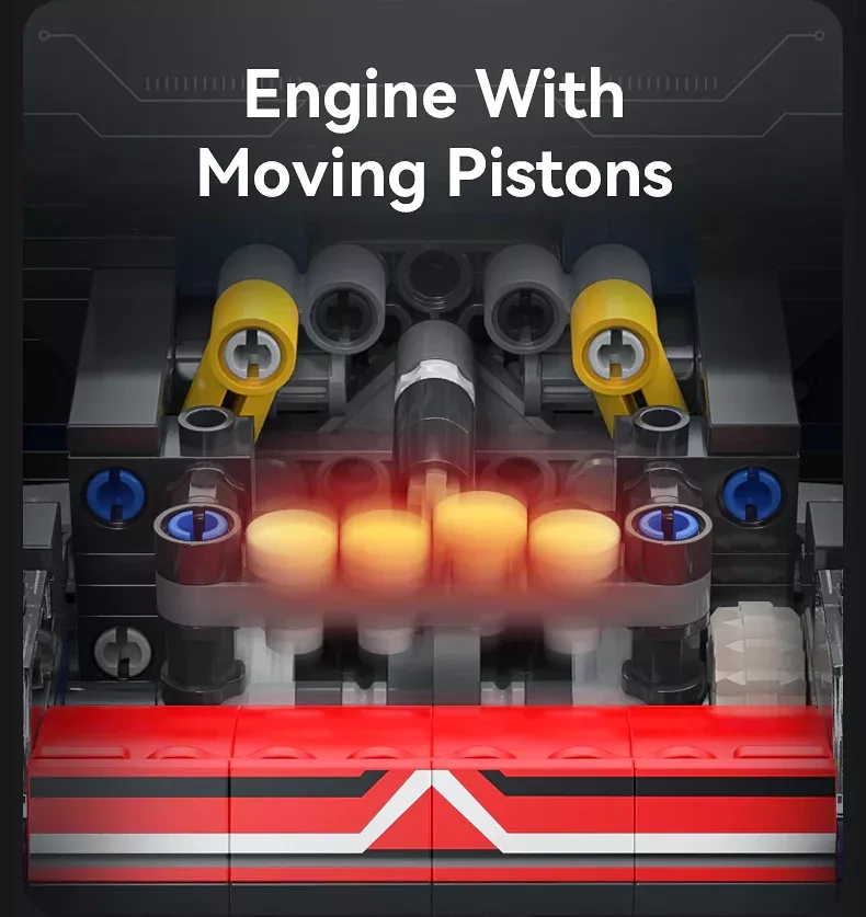 Nyitható ajtók, motorháztető és csomagtér fedél tárják fel az ülésekkel és kormánnyal felszerelt kabint, valamint a motorteret. Nem hiányoznak a realisztikus elemek sem, amelyek fokozzák az építés élményét.