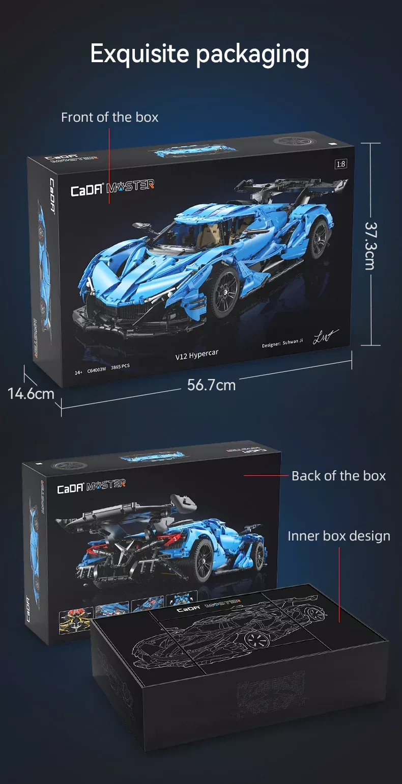 Fedezze fel a precízen kidolgozott szuperautó-modellt az igényeseknek – a CADA Master V12 Hypercar készletet 1:8 méretarányban, 3865 darabbal. Valósághű felépítés várja működő kormánnyal, nyitható ajtókkal, részletgazdag beltérrel és sportos, kék karosszériával fekete elemekkel. Ideális tapasztalt építőknek és reprezentatív ajándéknak is.