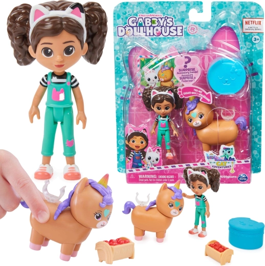 Lépj be a cicaházba a kedvenc hősnőddel, Gabbyvel és varázslatos kedvencével, Unikorcicával. A baba jellegzetes cicafüles fejpántot, részletgazdag öltözéket és több ízületi pontot kapott az egyszerű pózoláshoz. A szivárványos szarvú, lila sörényű kisállat készen áll a bújásra, lovaglásra és az etetésre is.