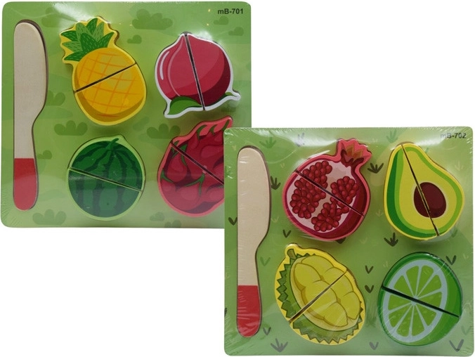 Kétféle gyümölcsváltozat közül választhat. Az egyes darabok stabilan tartanak együtt, ugyanakkor a fa késsel könnyen szétválaszthatók, ami élethű „szeletelési” élményt nyújt sérülésveszély nélkül. Kiváló választás otthonra, óvodába vagy ajándékba.