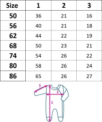 A praktikus, patentos záródásnak köszönhetően, amely a teljes elülső hosszban és a lábszárak között fut, gyors az öltöztetés és a pelenkázás, anélkül hogy a fejen át kellene áthúzni. Kiváló választás kb. 9–12 hónapos babáknak, kényelmes hálóruhának és nappali viseletnek egyaránt.