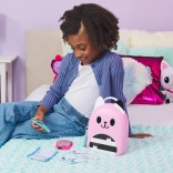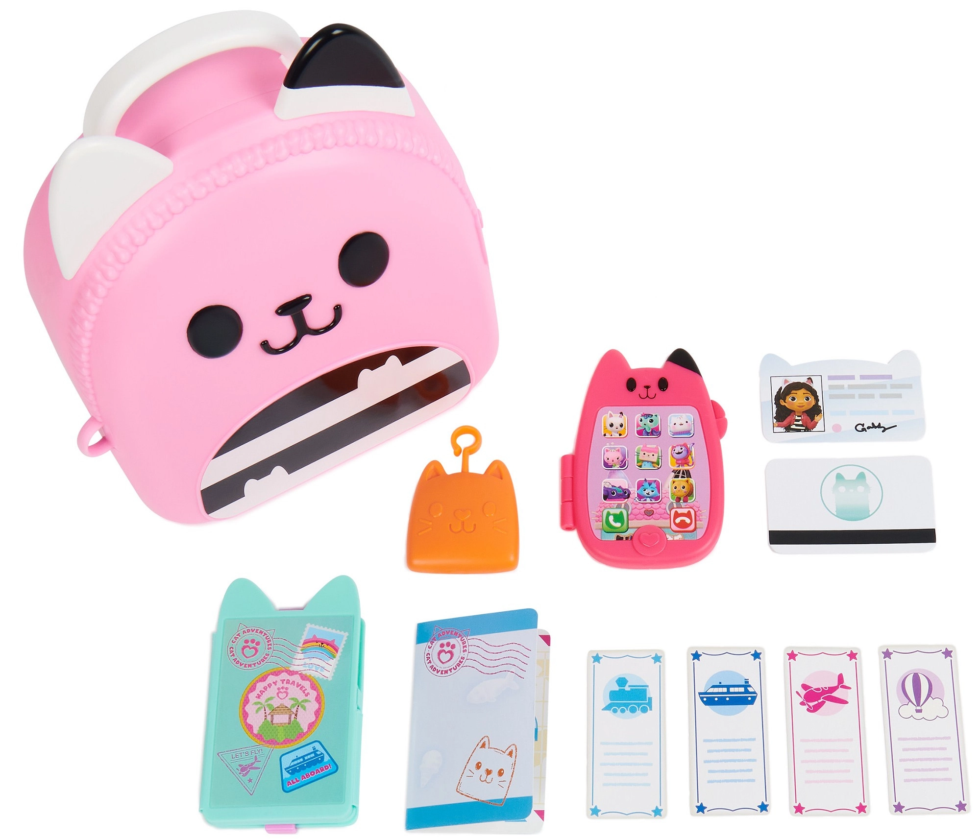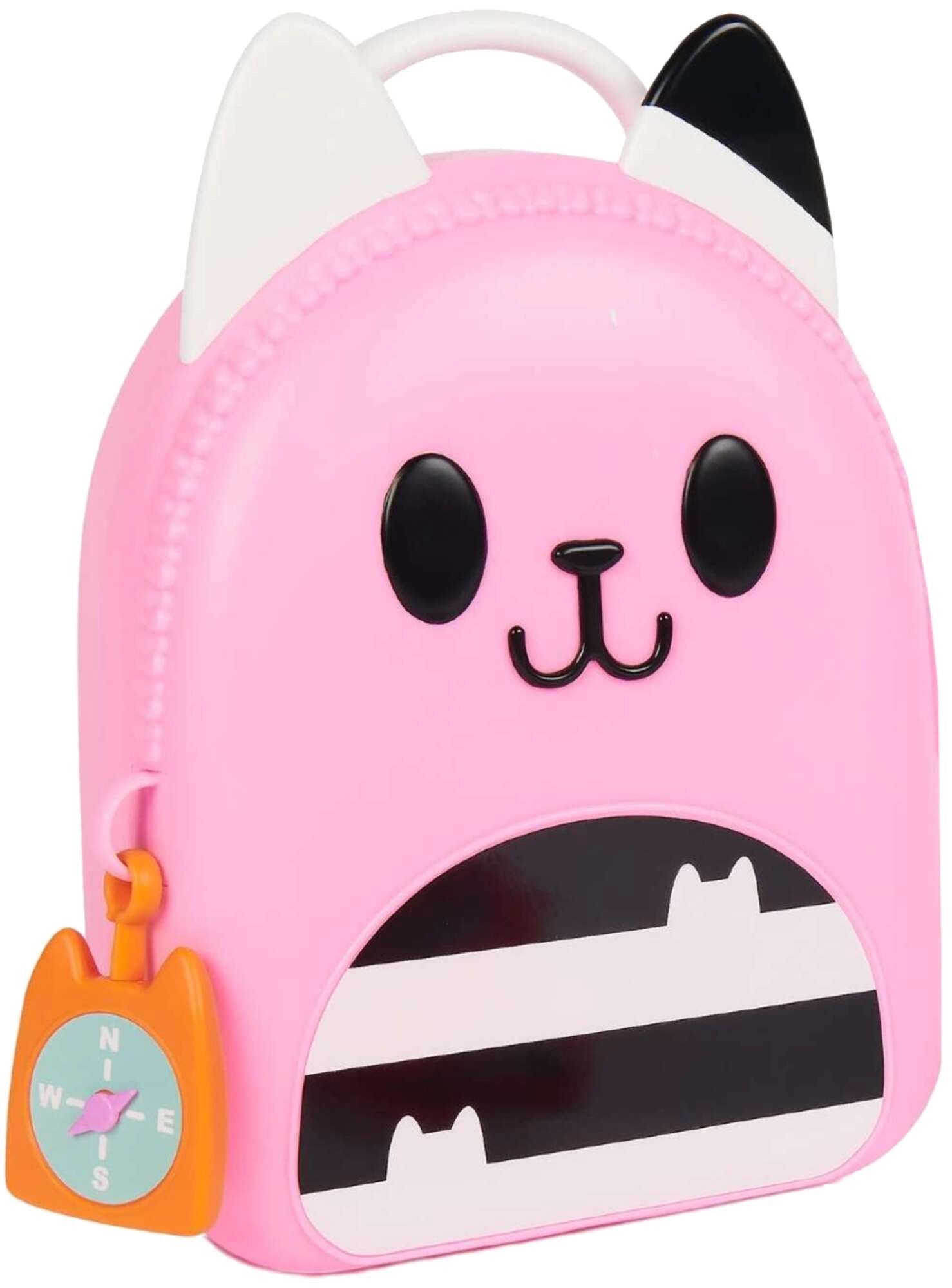 Belül minden megtalálható a játékos utazásszimulációhoz: telefon és pénztárca hellyel a útlevélnek, igazolványnak, jegyeknek, valamint egy cuki iránytű mozgó mutatóval. Az összes darab elfér a füllel és cicafülekkel ellátott hátizsákban. Ideális ajándék a sorozat kis rajongóinak és a mindennapi útközbeni szórakozáshoz.