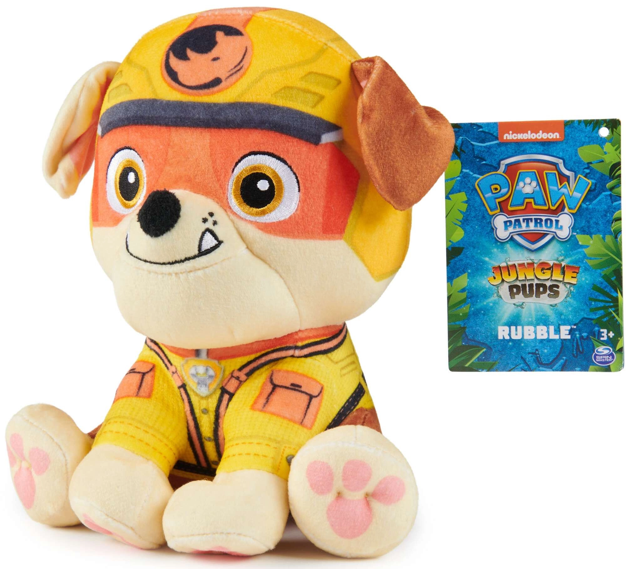 A PAW PATROL Jungle Pups sorozatból ismert aranyos plüss Rubble minden kis rajongónak örömet szerez. Puha és selymes, ideális ölelgetéshez és képzeletbeli játékhoz. Jellegzetes sárga felszerelésében, az építő hős ruházatában készen áll minden kalandra. Méret kb. 18 cm, tökéletes a gyerekkezekbe.