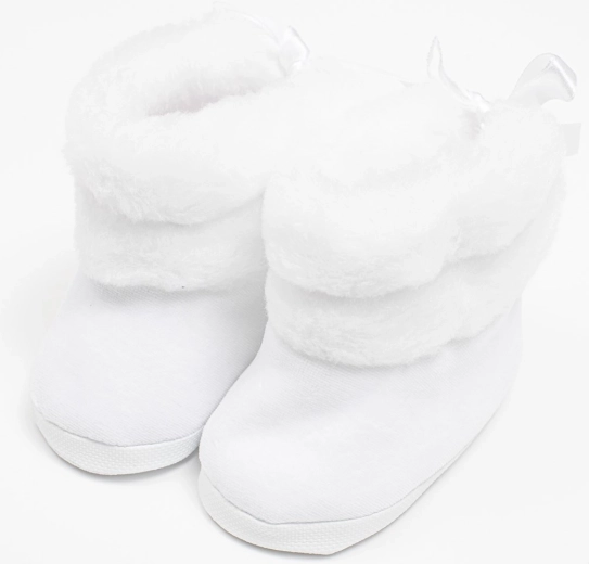A puhatalpú cipőcskék széles belső tere segíti az ujjak és izmok természetes mozgását. A vékony szintetikus talp (nem járásra tervezve) segít megtartani a meleget és védi a lábakat babakocsiban vagy autósülésben. Praktikus díszdobozban szállítva, kiváló ajándék újszülötteknek is.