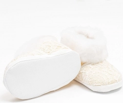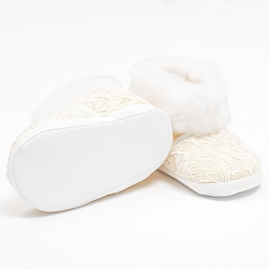 A tépőzáras záródás megkönnyíti és felgyorsítja a felvételt, míg a könnyű szintetikus talp nem korlátozza a természetes mozgást. A csizmácskák ideálisak babakocsiba, autósülésbe vagy otthonra – nem járásra valók.