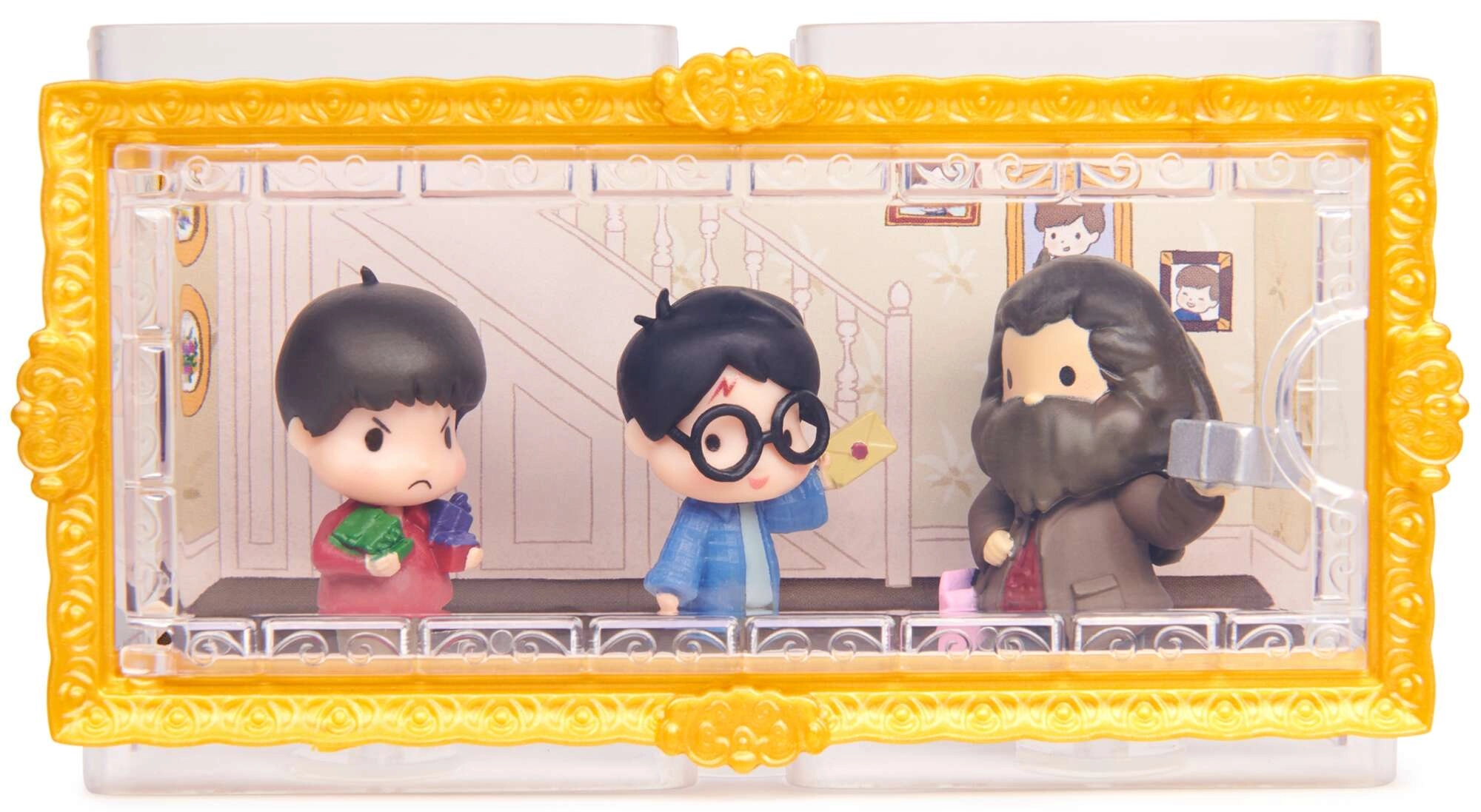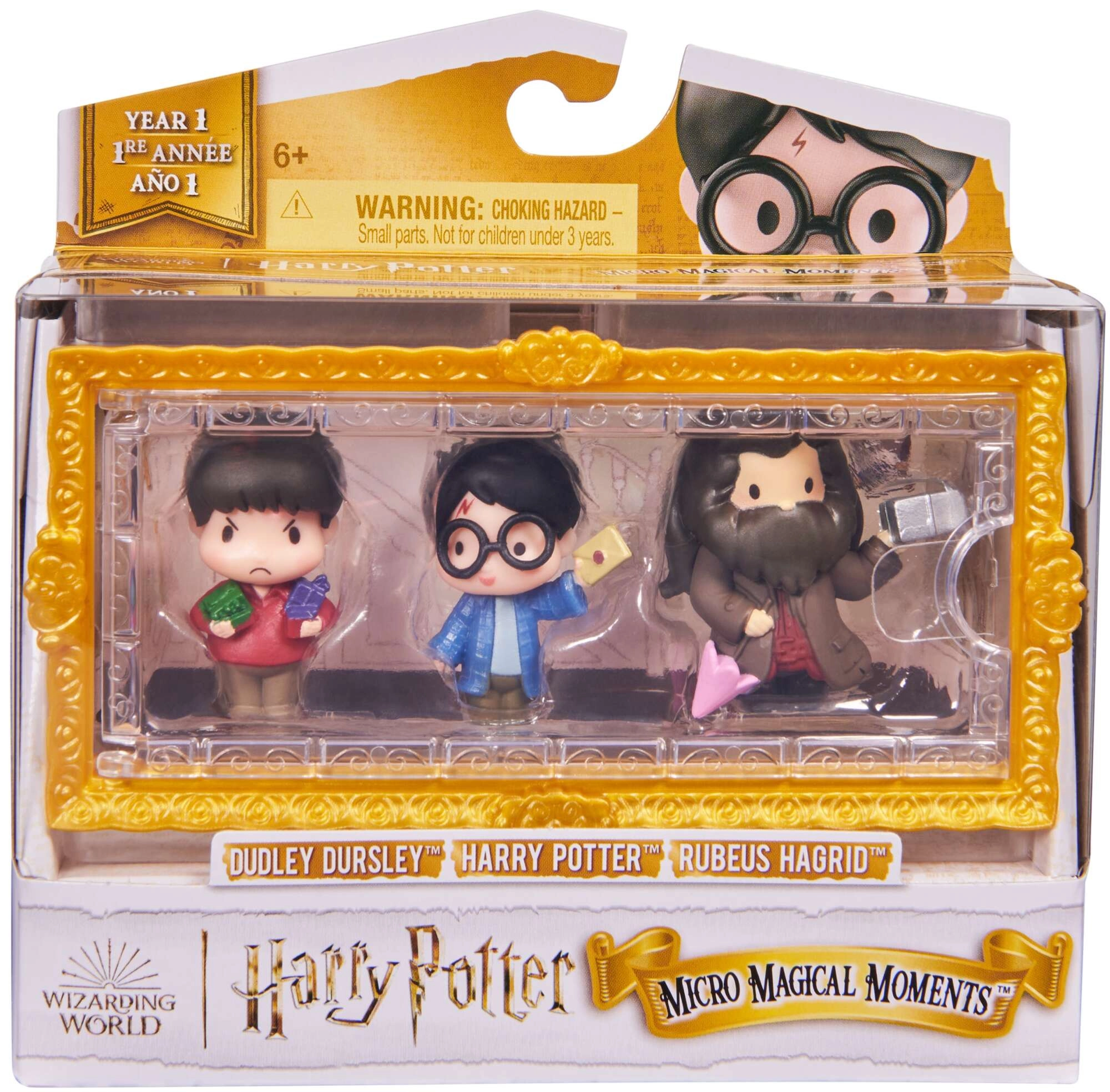Fedezd fel a Micro Magical Moments sorozat varázsát, és alkosd meg saját miniatűr roxforti diorámádat! A Harry Potter, Rubeus Hagrid és Dudley Dursley figurák praktikus, átlátszó ablakos tokban kaptak helyet, amely védi őket, és stílusosan ki is állítja. Mindegyik karakter ikonikus kiegészítőkkel érkezik – Hagrid dobozzal és esernyővel, Harry levéllel, Dudley pedig a játékaival.