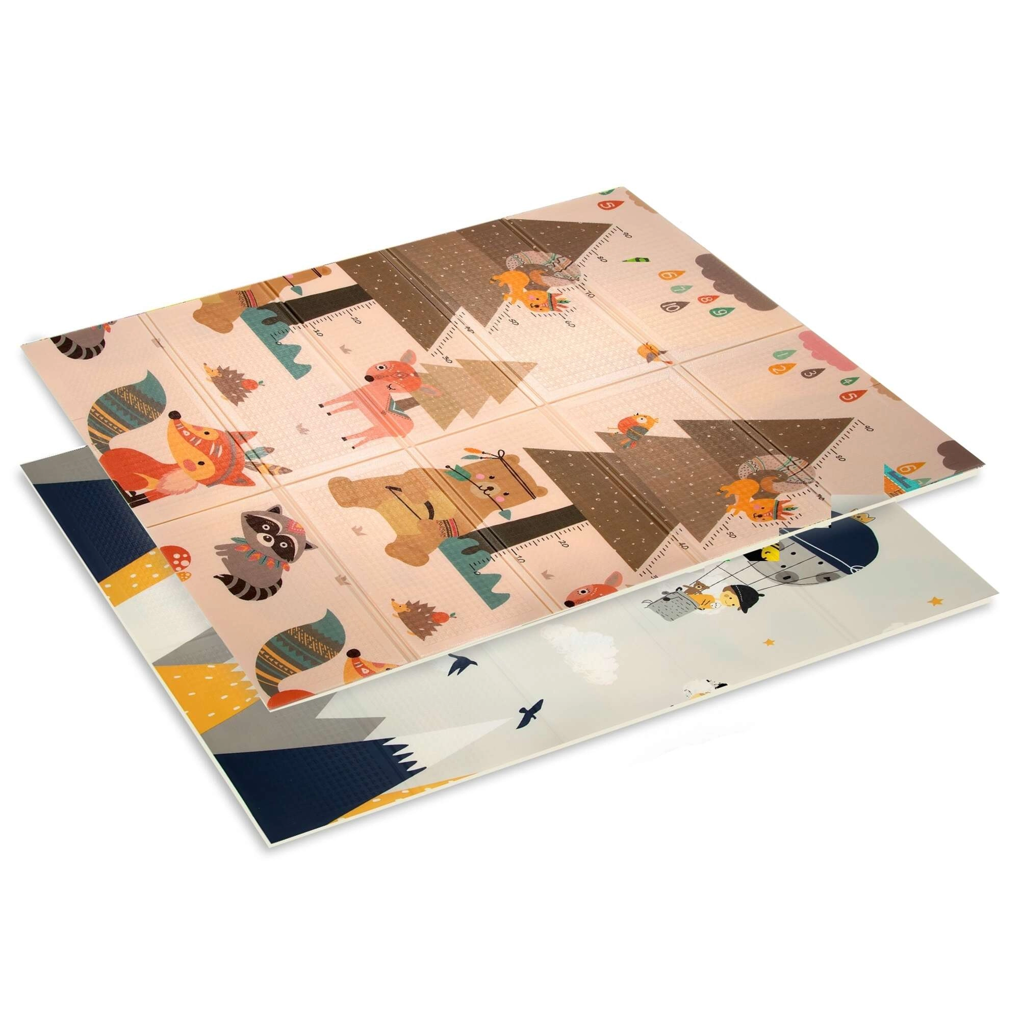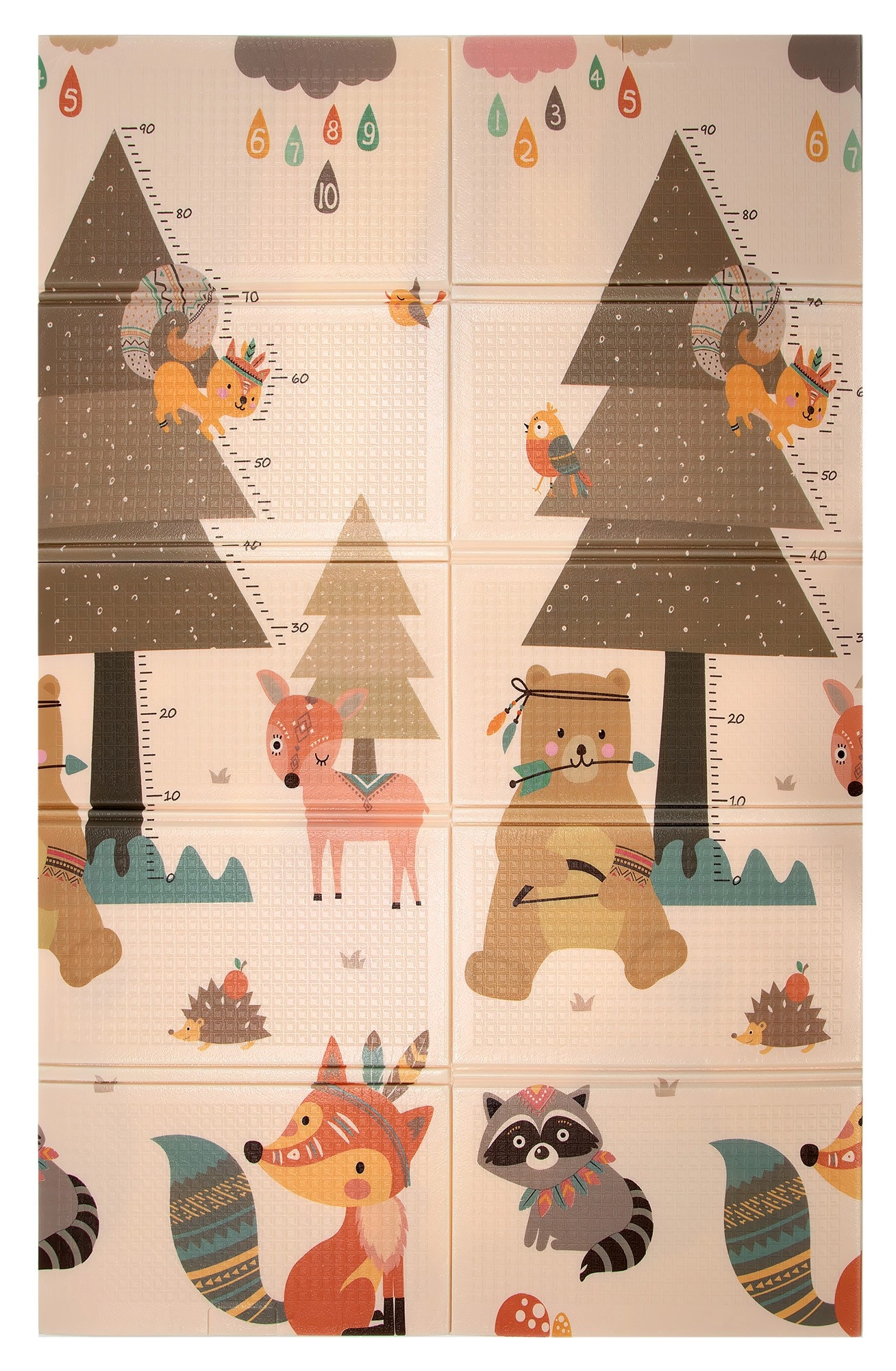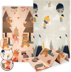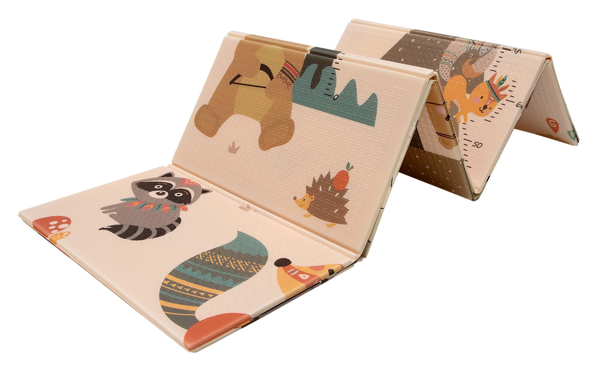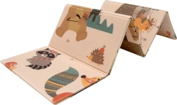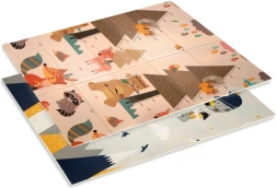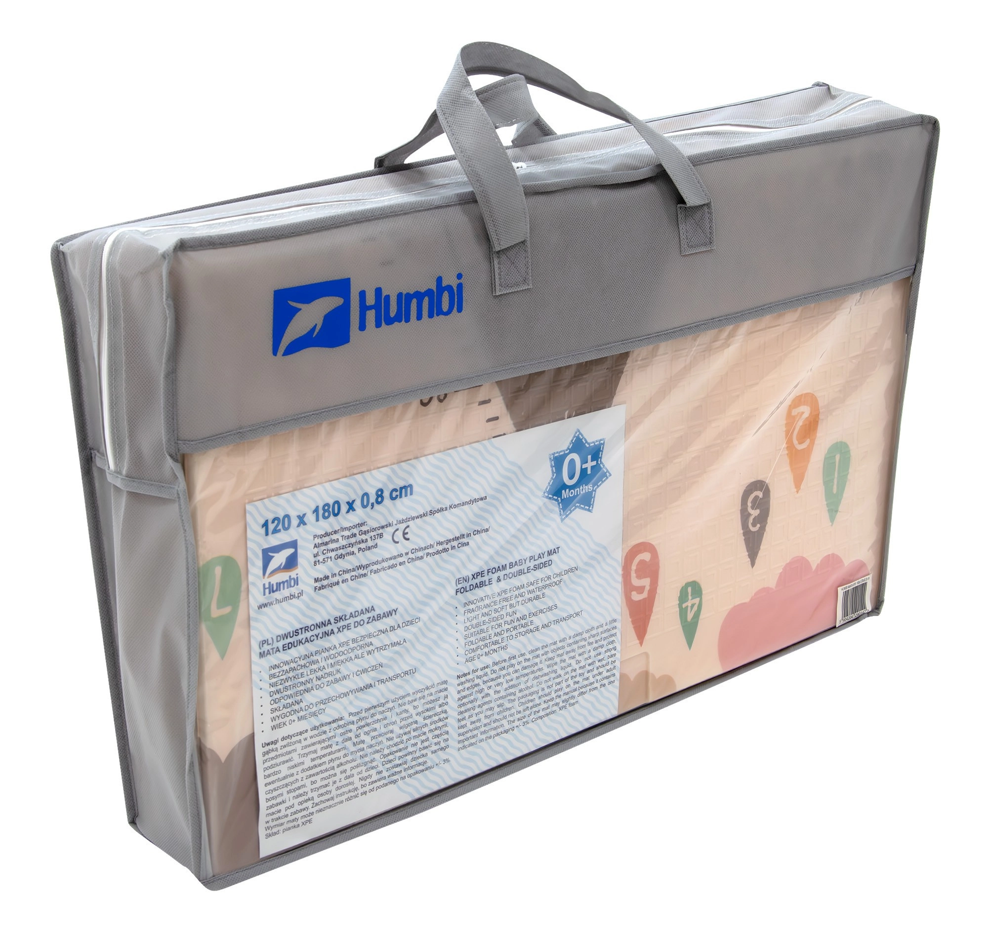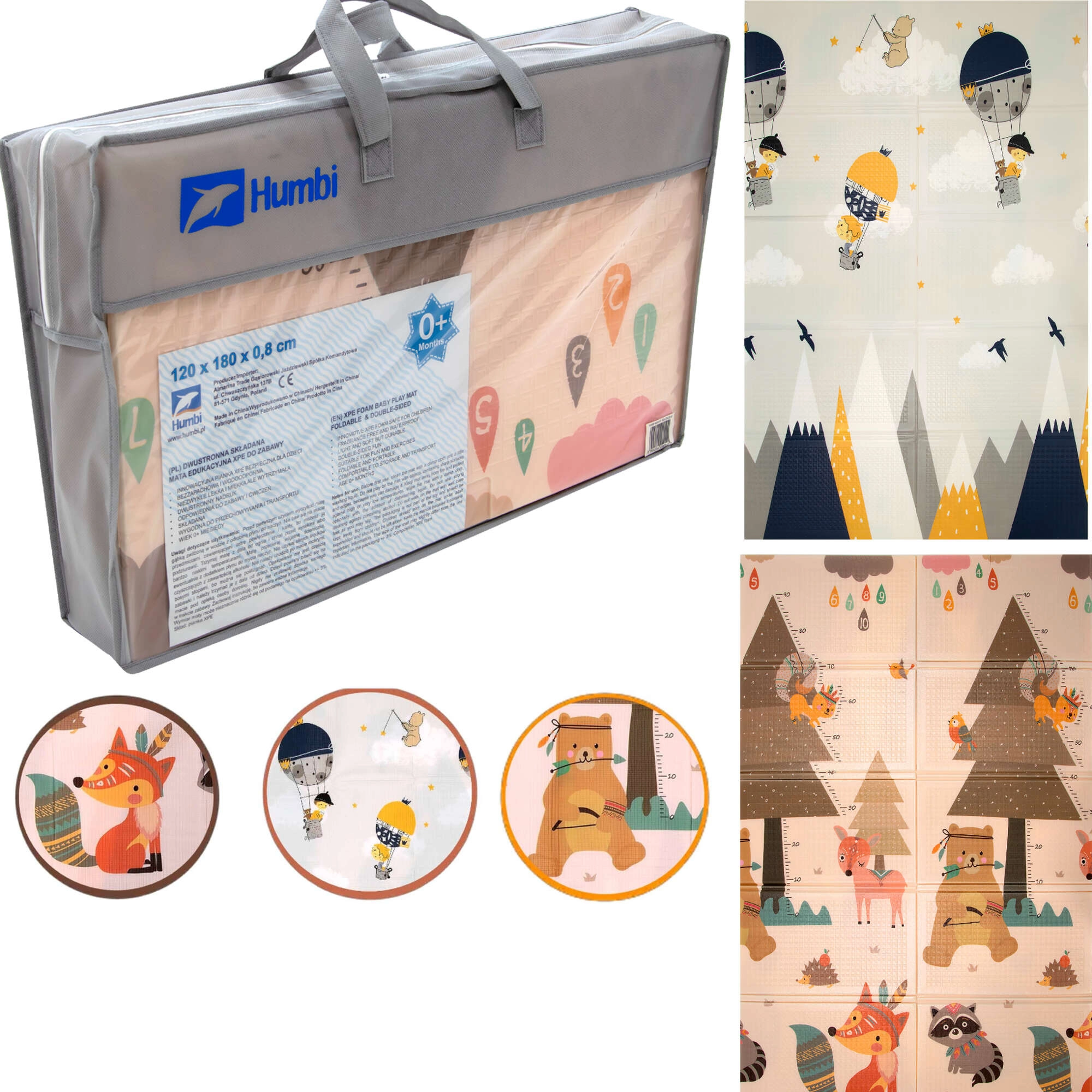 A HUMBI szőnyeg prémium XPE habból kiváló ütéscsillapítást, a padló hidegétől való hőszigetelést és finoman domború, csúszásgátló felületet kínál a biztonságos kúszáshoz és az első lépésekhez. Kétoldalas – az egyik oldalon aranyos erdei állatok, a másikon hegy- és kalandmotívum –, így könnyen az enteriőrhöz és a gyermek hangulatához igazítható.