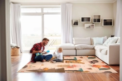 A vastag, rugalmas és szagtalan XPE hab kiváló ütéscsillapítást és hőszigetelést nyújt a hideg padlótól. Nem toxikus, vízálló és könnyen karbantartható.
