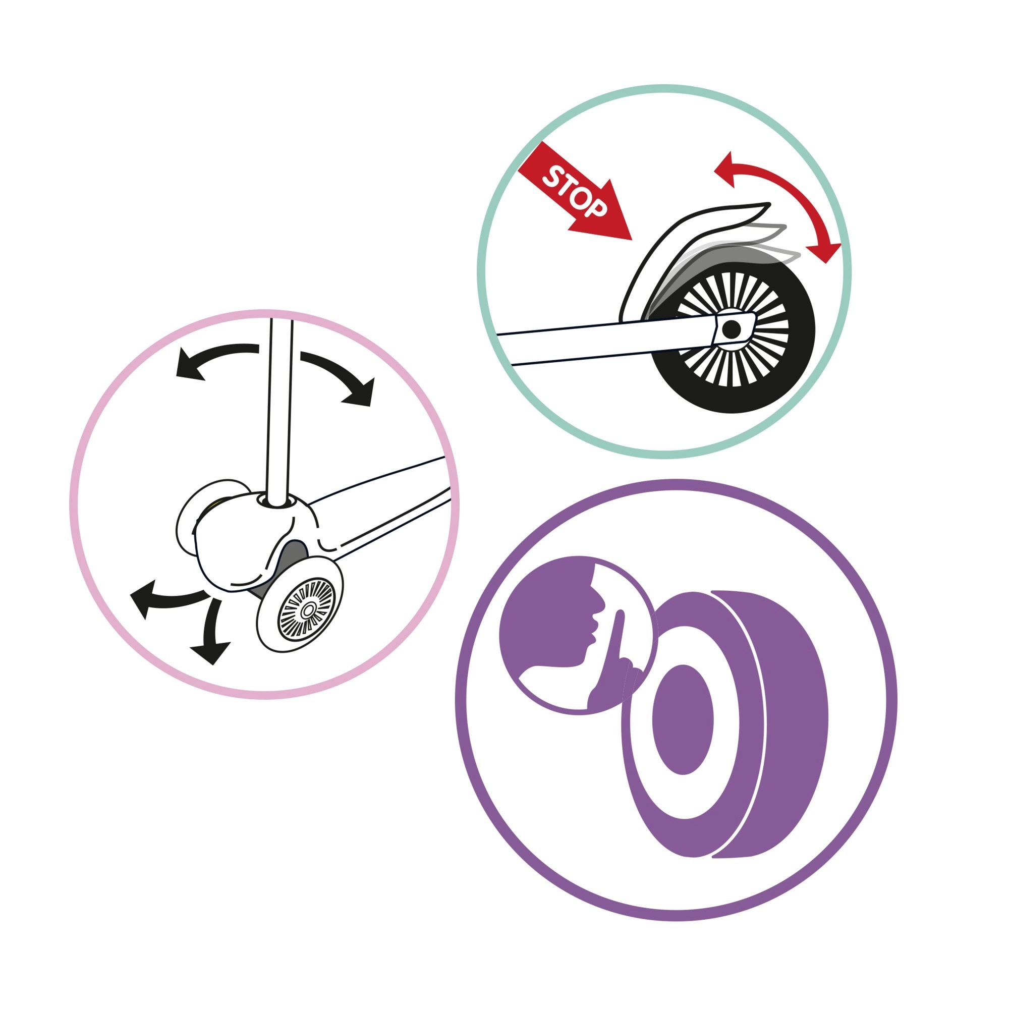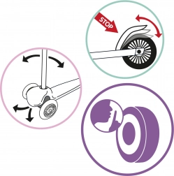 A biztonság az első: a hátsó lábfék gyors és egyenletes megállást tesz lehetővé, míg a csendes kerekek sima működést biztosítanak felesleges zaj nélkül. A roller kiválóan fejleszti a gyerekek motorikáját, koordinációját és önbizalmát.