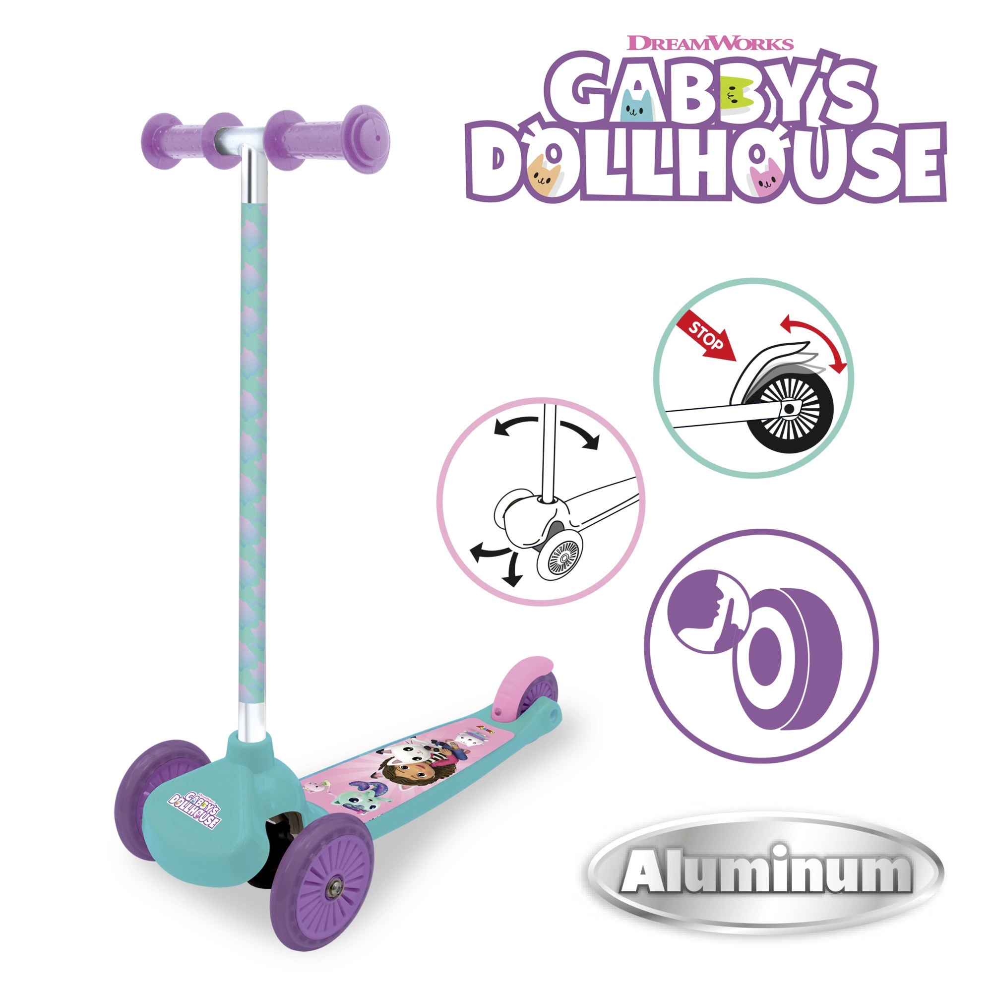 A SMOBY gyermek háromkerekű rollere Gabi babaháza (Gabby's Dollhouse) motívummal ideális a 3 éves kortól. A két első keréknek, a dőlésirányításnak és a lábféknek köszönhetően jobb a stabilitás, biztonságosabb a haladás és egyszerű a kezelhetőség. A könnyű szerkezet és a csendes kerekek kényelmes, szórakoztató utazást biztosítanak otthon és a szabadban is.