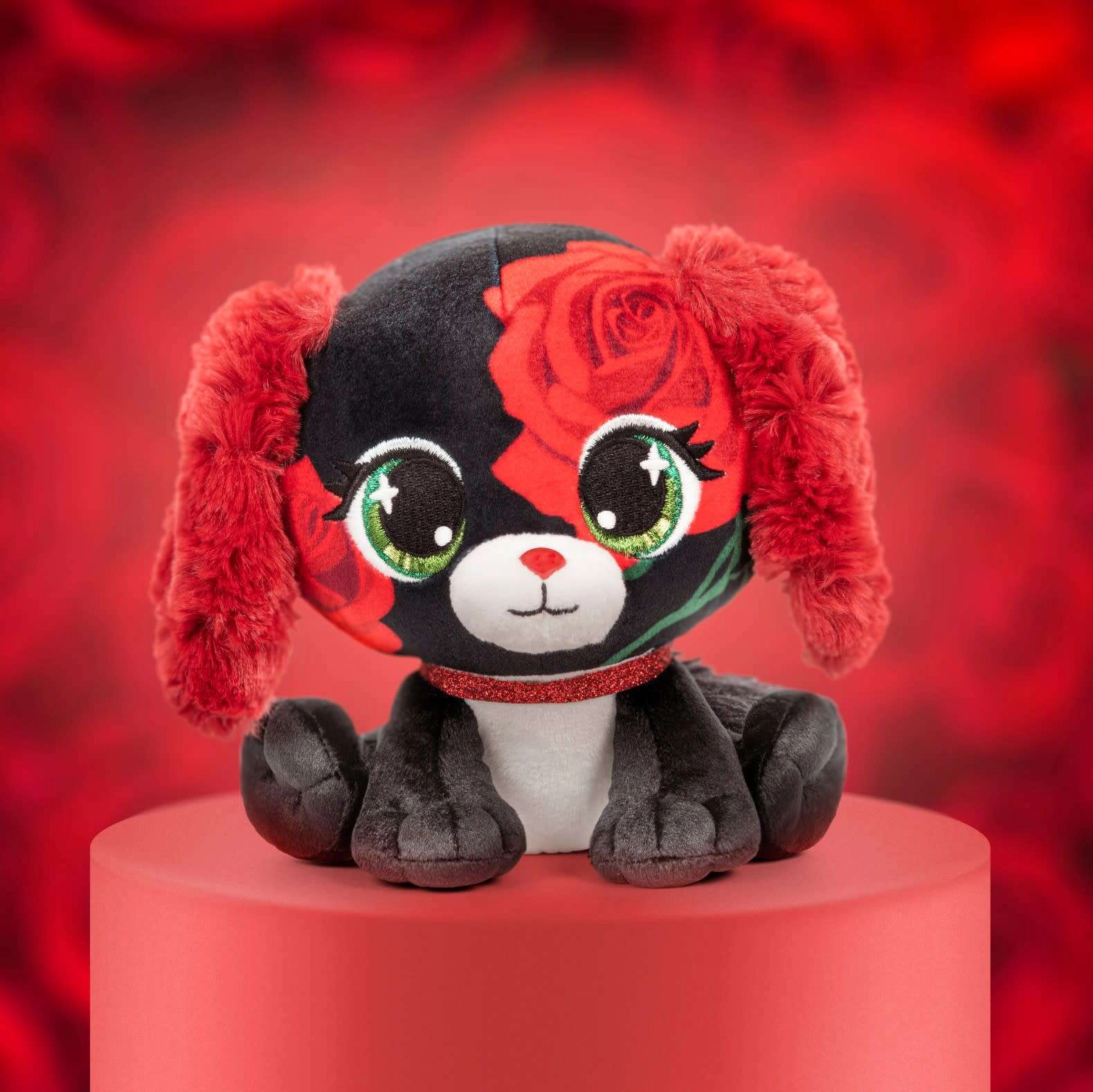 Bemutatjuk a P.Lushes Pets kollekció stílusos kis kedvencét, a Anna Dolce kutyust. Első pillantásra megragad a kontrasztos fekete bunda piros rózsákkal, a selymes, vörös fülecskék és a cuki orrocska. A csillogó nyakörv elegáns kis pluszt ad, így remek ajándék kicsiknek és nagyobb plüssrajongóknak egyaránt.