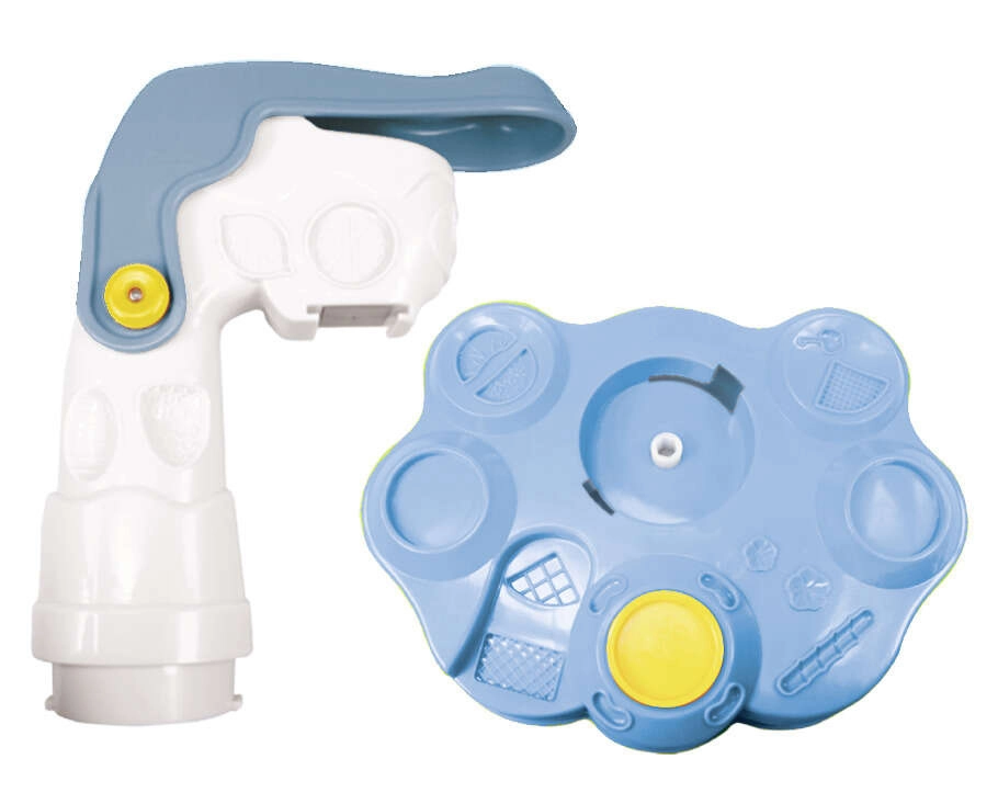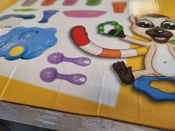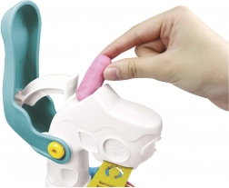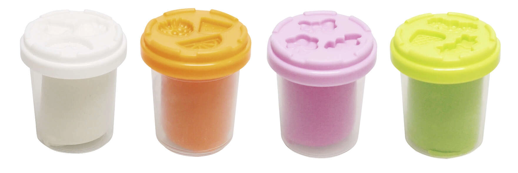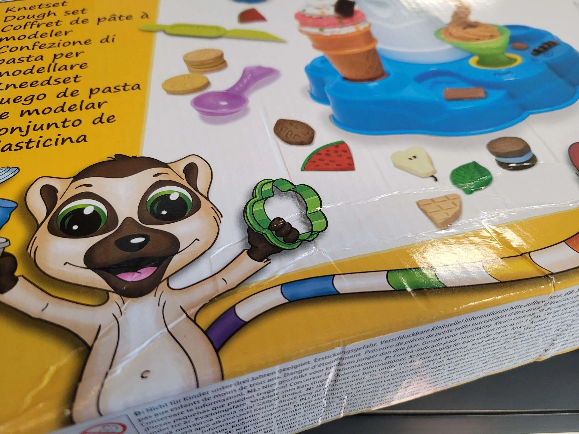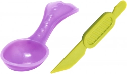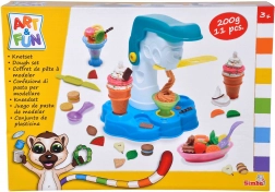 - Állomás extruderrel, fagylalt- és díszítőformák, poharak és tálkák, kanál, biztonságos kis kés, 4 tégely gyurma