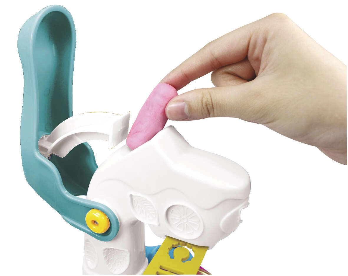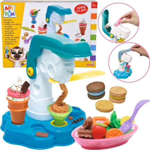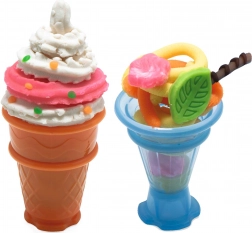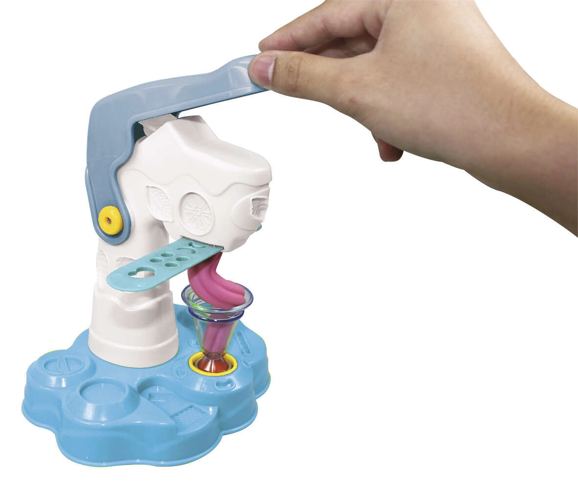 Ez a vidám fagylaltkészítő lehetővé teszi a gyerekeknek, hogy „gombócokat” nyomjanak, megszórják díszítéssel, és aranyos poharakba, tálkákba tegyék. A gazdag tartozékoknak köszönhetően a kis cukrászok kombinálhatják a színeket és formákat, és saját desszerteket tálalhatnak – a klasszikus fagylalttól a szivárványos finomságokig „öntettel” és „gyümölccsel”.