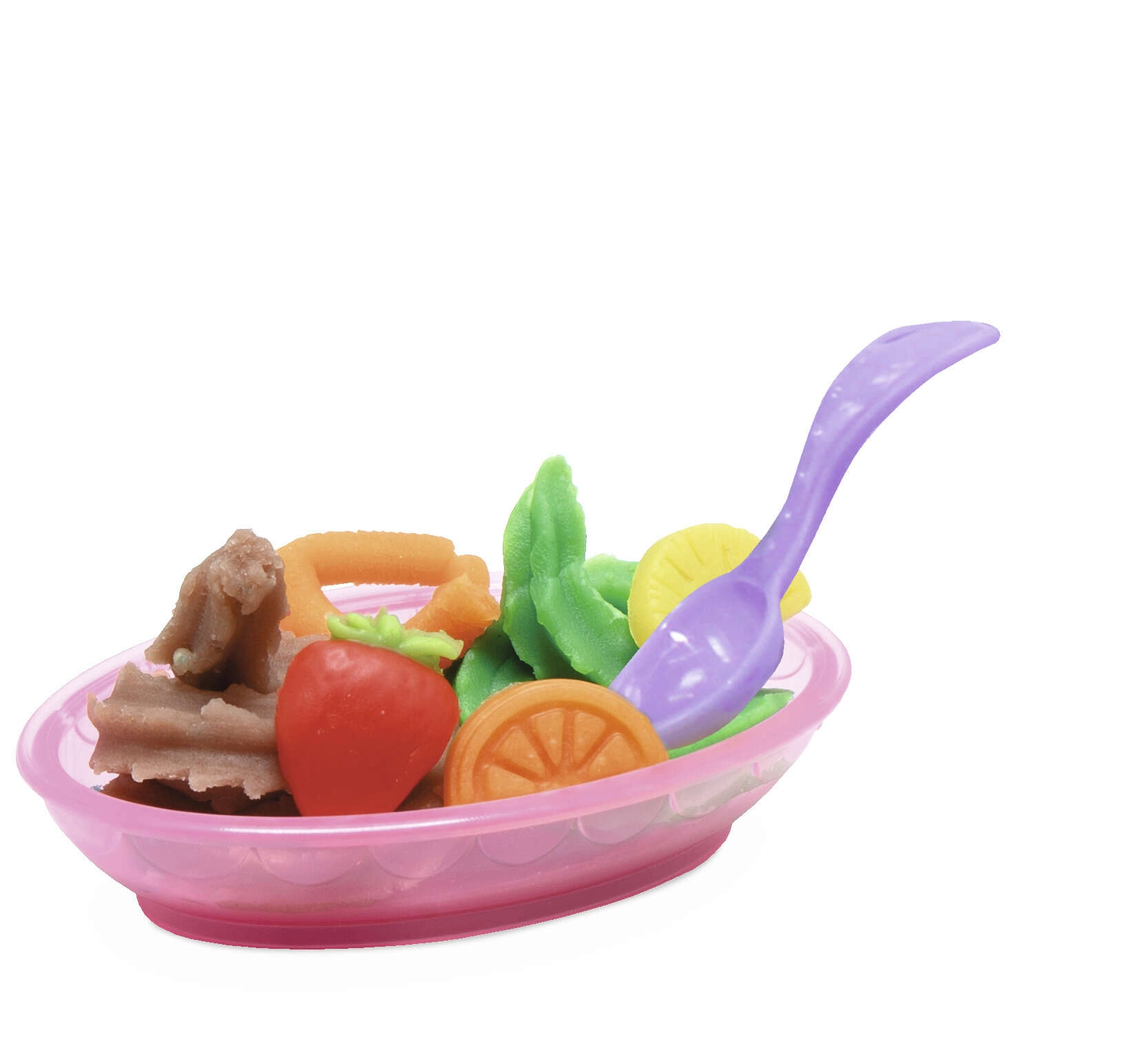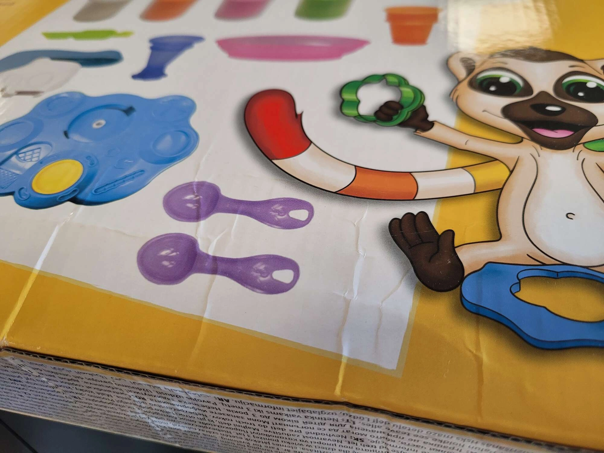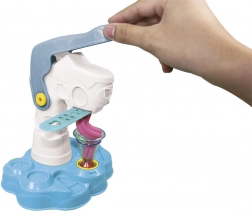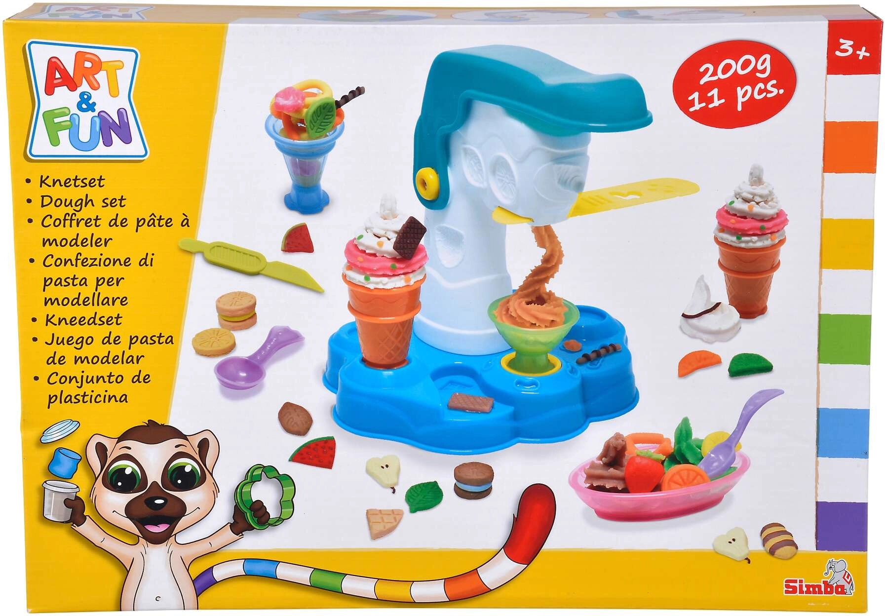 Ez a vidám fagylaltkészítő lehetővé teszi a gyerekeknek, hogy „gombócokat” nyomjanak, megszórják díszítéssel, és aranyos poharakba, tálkákba tegyék. A gazdag tartozékoknak köszönhetően a kis cukrászok kombinálhatják a színeket és formákat, és saját desszerteket tálalhatnak – a klasszikus fagylalttól a szivárványos finomságokig „öntettel” és „gyümölccsel”.