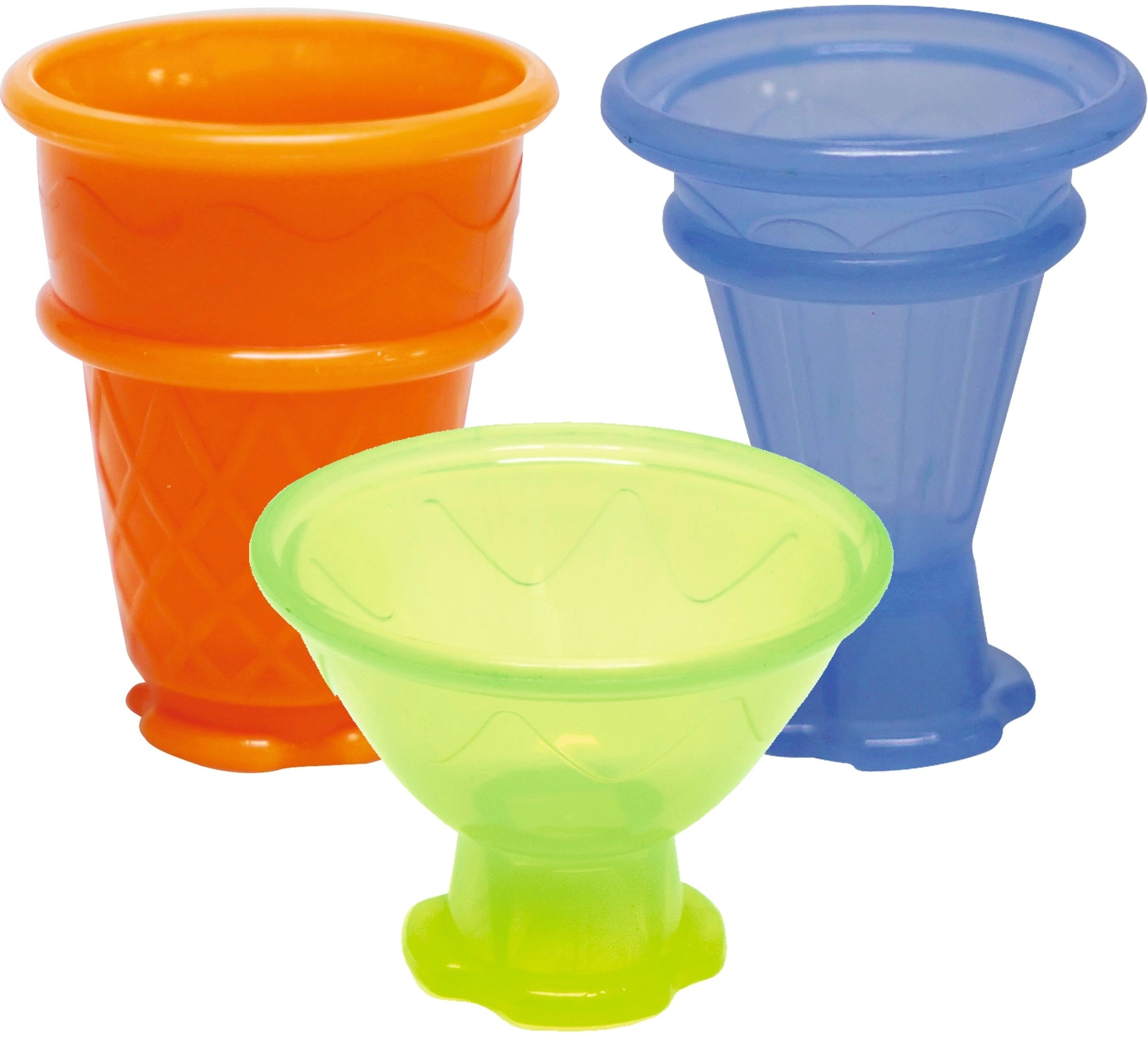 Színes poharak és tálkák adnak minden alkotásnak igazi megjelenést, és ösztönzik a gyerekeket a cukrászdás szerepjátékokra.