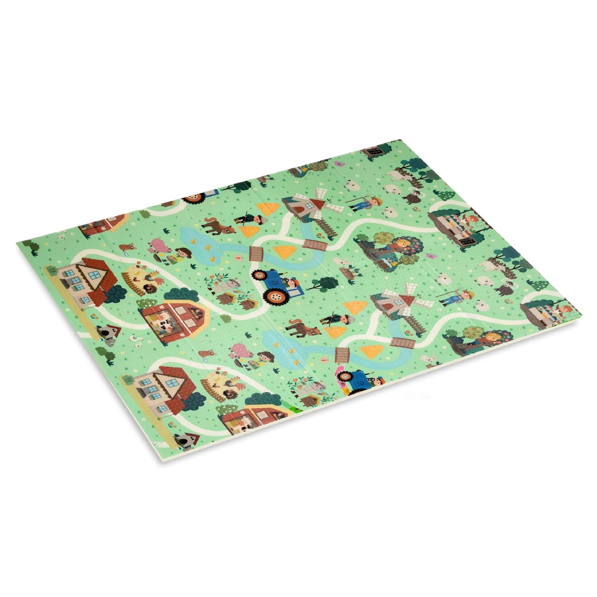 Az XPE anyag nem toxikus, vízálló és könnyen tisztítható – elég egy nedves kendővel áttörölni. A szőnyeg könnyű, gyorsan összehajtható, és a csúszásgátló felület finom domborítása támogatja a biztonságos mászást és járást, valamint a szenzoros stimulációt.