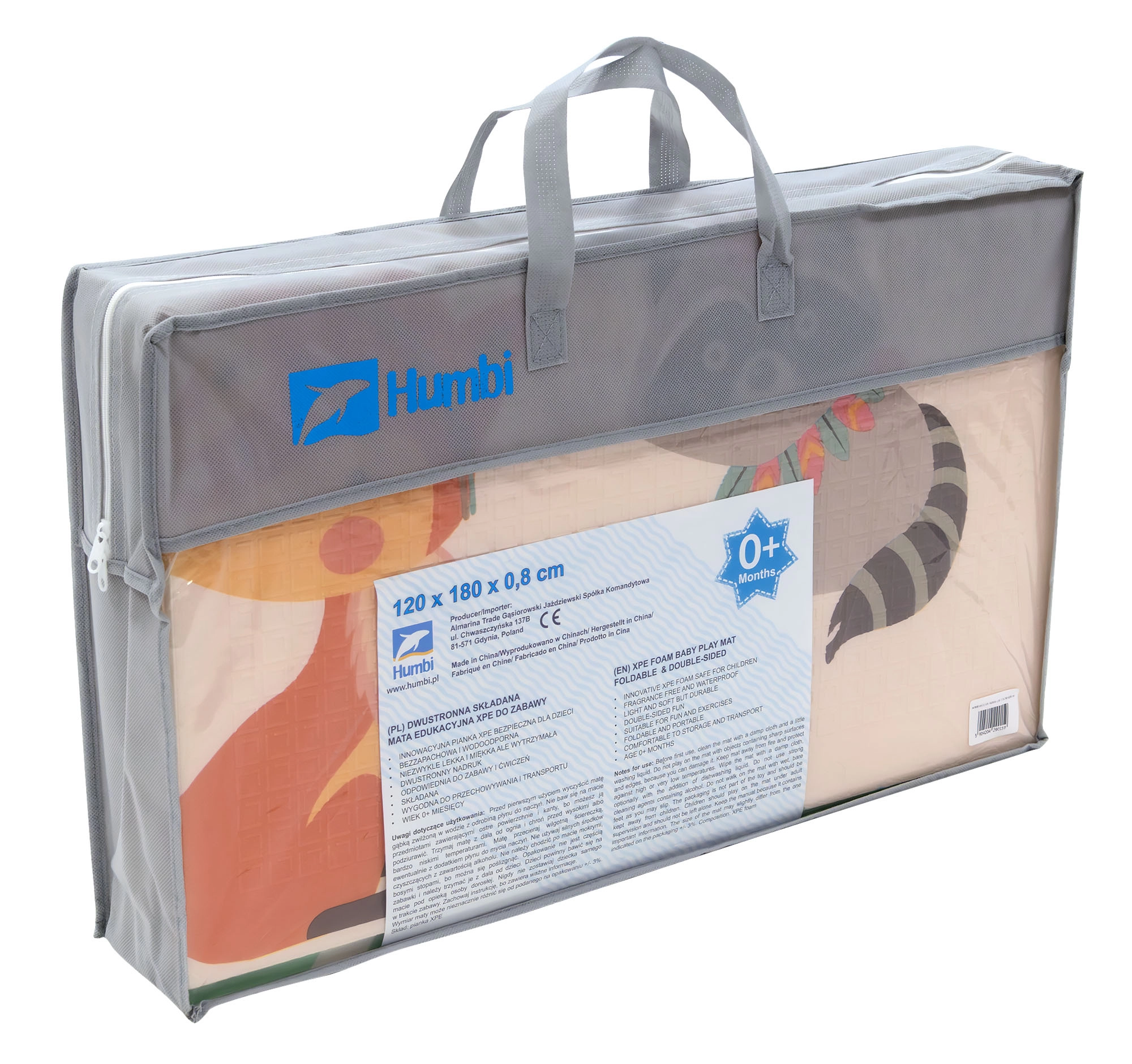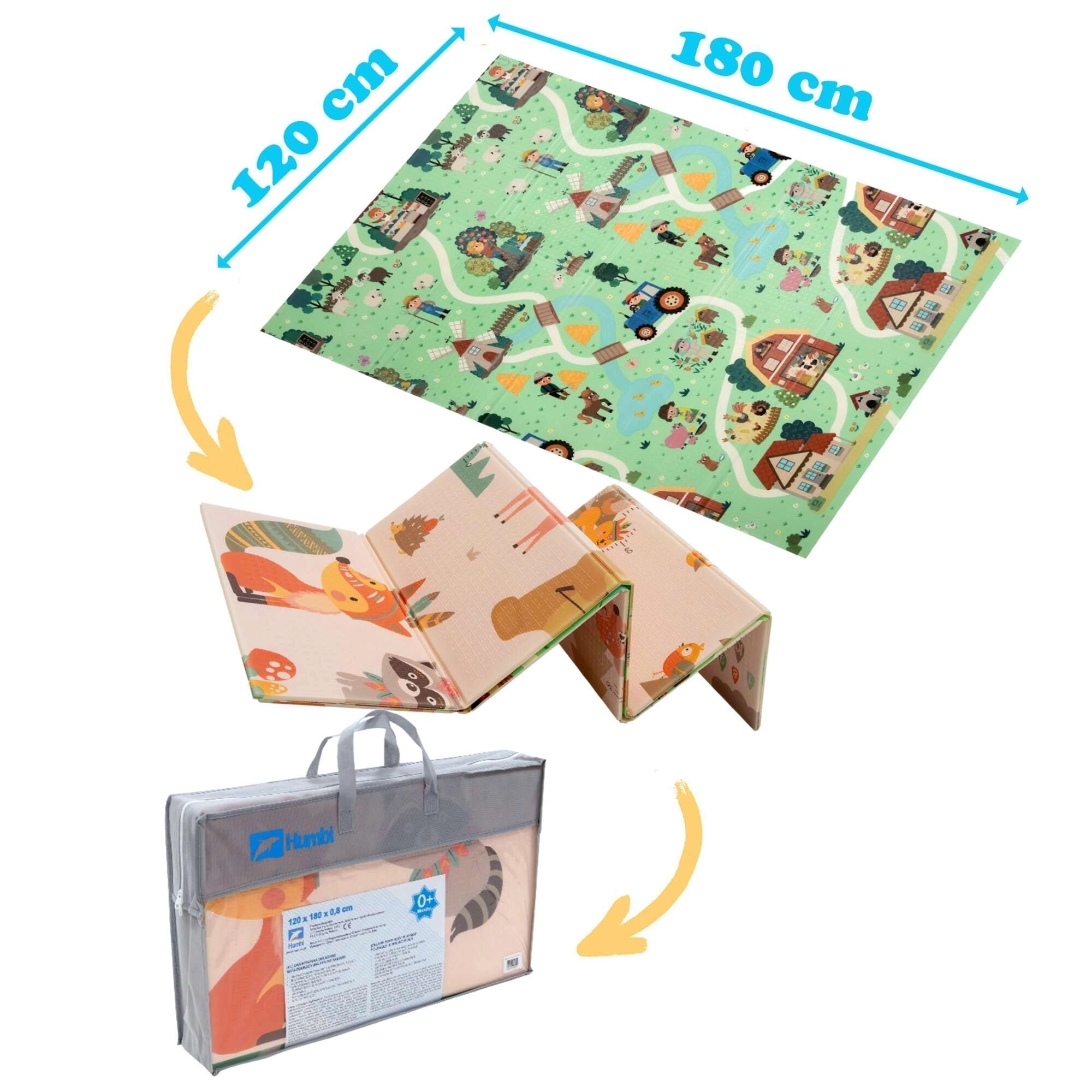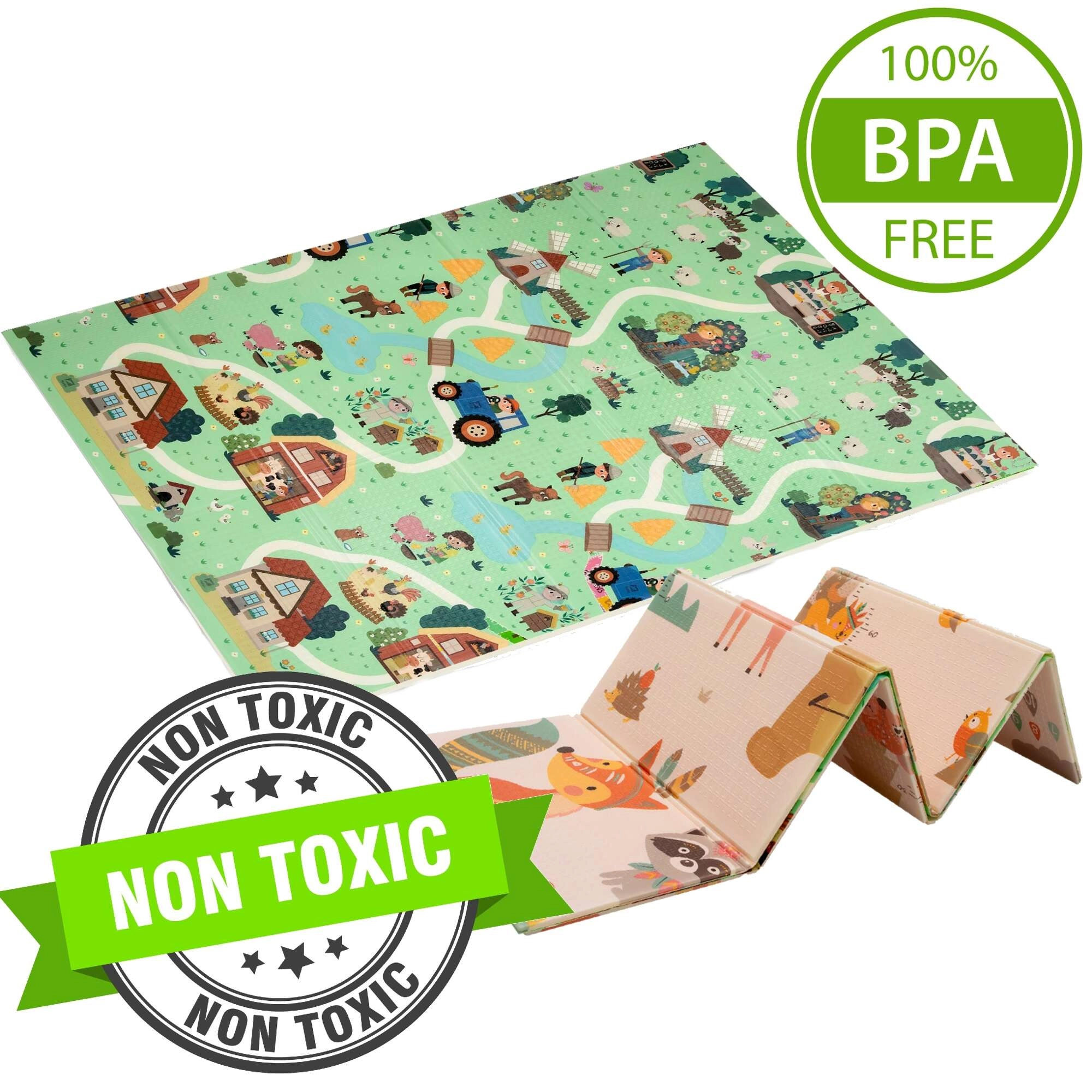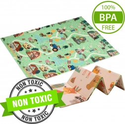 A prémium XPE hab szagtalan, nem mérgező és tartós. A 0,8 cm vastagság kiváló hidegszigetelést és kényelmes párnázást ad kúszáshoz és az első lépésekhez. A kétoldalas nyomat támogatja az érzékszervi fejlődést, és kreatív játékra ösztönöz kisautókkal az utakon, illetve az állatok felfedezésével.