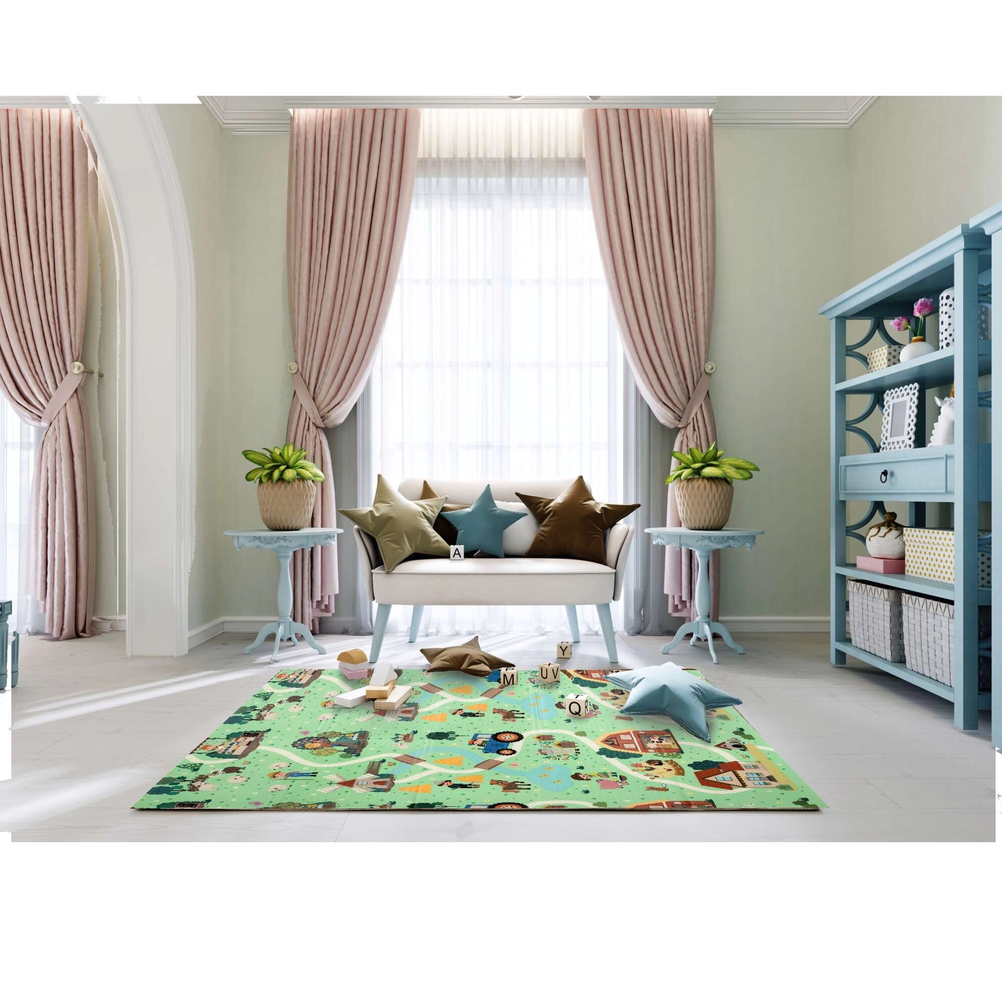 Puha, tartós és higiénikus XPE, vízálló és nem csúszik. Kiválóan tompítja az eséseket, szigetel a hidegtől, és könnyen tisztítható.