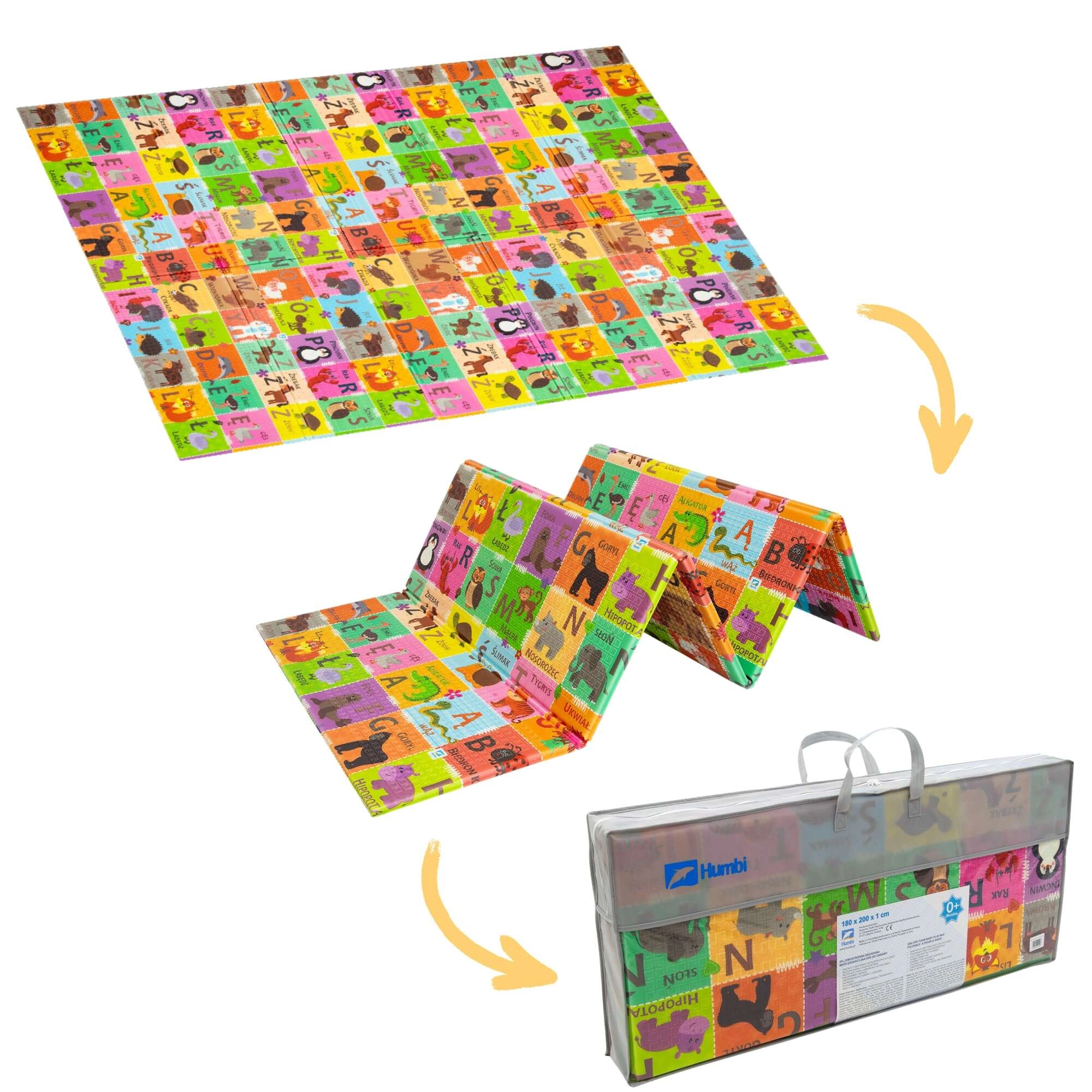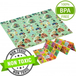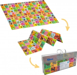 A két játékos oldal támogatja a gyermek fejlődését: színes ábécé állatokkal, valamint falusi/utas motívum kisautózáshoz és felfedezéshez. A szőnyeget néhány másodperc alatt összehajthatja, a mellékelt táskában könnyen hordozható, és a vízálló felületnek köszönhetően elég nedves ruhával áttörölni.