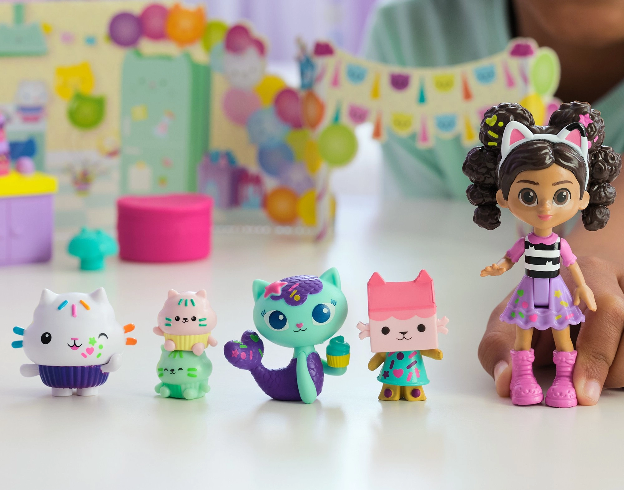 Nem hiányzik Gabby és cicabarátai – Mercat, Cakey, Baby Box és a Cupcake Cousins. Ideális a GABBY’S DOLLHOUSE jeleneteinek újrajátszásához.