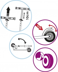 A kényelem és biztonság érdekében állítható kormánymagassággal (a gyermek növekedéséhez), puha habmarkolatokkal, csúszásmentes fellépővel és hátsó sárvédőn elhelyezett lábfékkel rendelkezik. A csendes, nem csúszó kerekek egyenletes haladást biztosítanak a járdán. Remek választás az egyensúly, a koordináció és a magabiztos közlekedés fejlesztéséhez.
